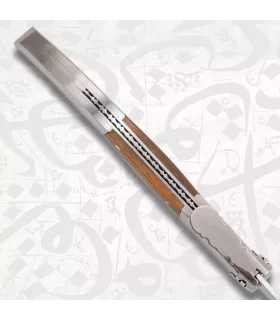 Het handvat, vaak gemaakt van olijfhout of ambachtelijke materialen, biedt een comfortabele en stevige grip. Ambachtelijke messen, zoals de klassieke messen uit Albacete, vallen op door hun onberispelijke afwerking en unieke details, perfect voor verzamelaars en veeleisende gebruikers die kwaliteit en stijl in een praktisch gereedschap zoeken.