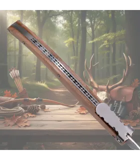 Deze messen, vaak met een houten of hertengewei handvat, combineren de traditie van de Albacete-messen met innovatieve opensystemen. De ratel produceert een karakteristiek geluid dat een veilige sluiting en snelle opening garandeert, zeer gewaardeerd in sportieve en landelijke omgevingen.