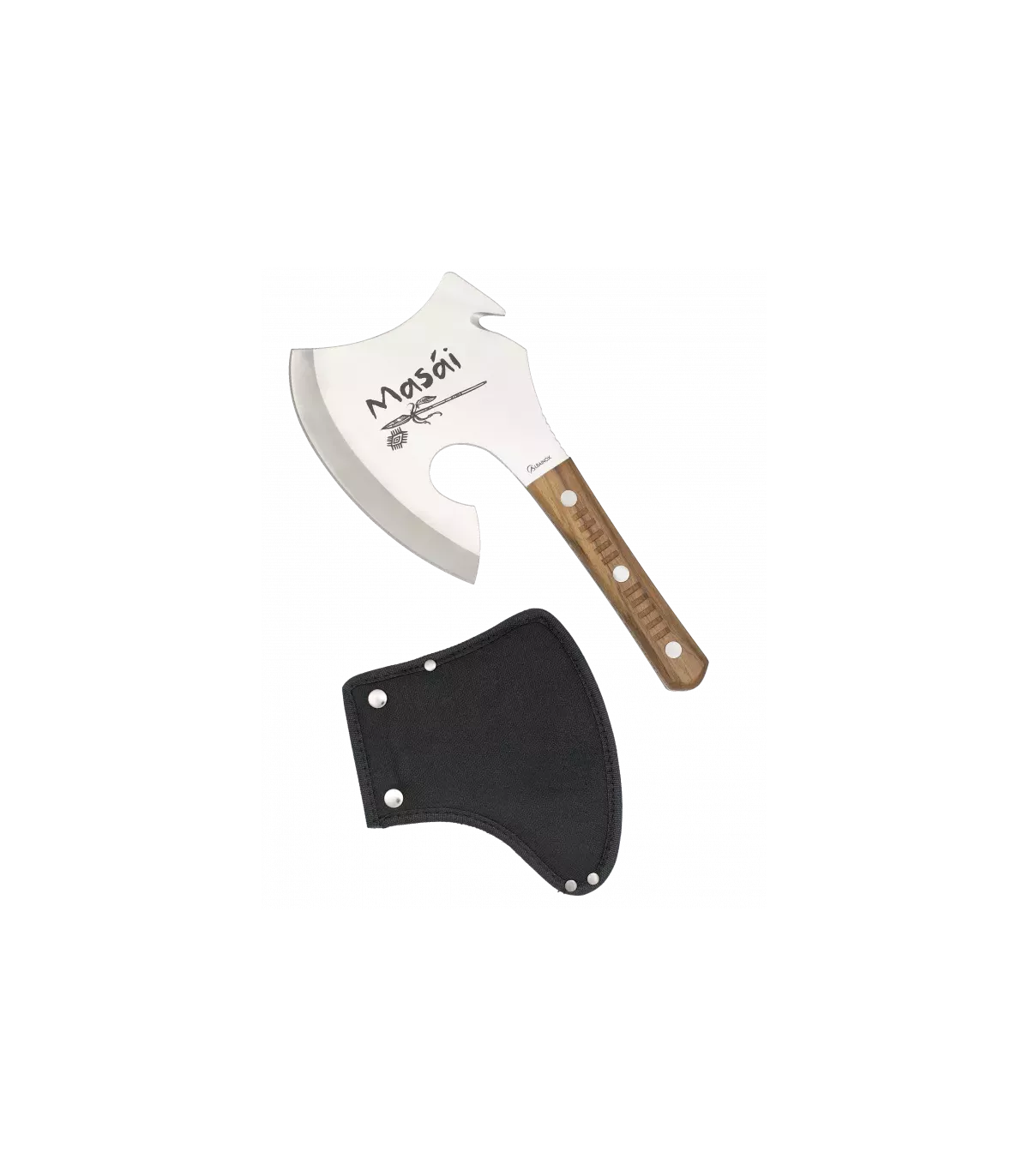 De tactische bijl Albainox Masái is het perfecte wapen voor iedereen die een duurzaam en betrouwbaar gereedschap nodig heeft. Met een blad van 16 cm en een houten handvat van 13 cm is hij ontworpen om gemakkelijk door elk obstakel te snijden. Het gebruikte 3CR13MOV staal voor het blad is van hoge kwaliteit, waardoor het bestand is tegen slijtage en corrosie. Bovendien geeft de satijnen afwerking hem een elegante en aantrekkelijke uitstraling.