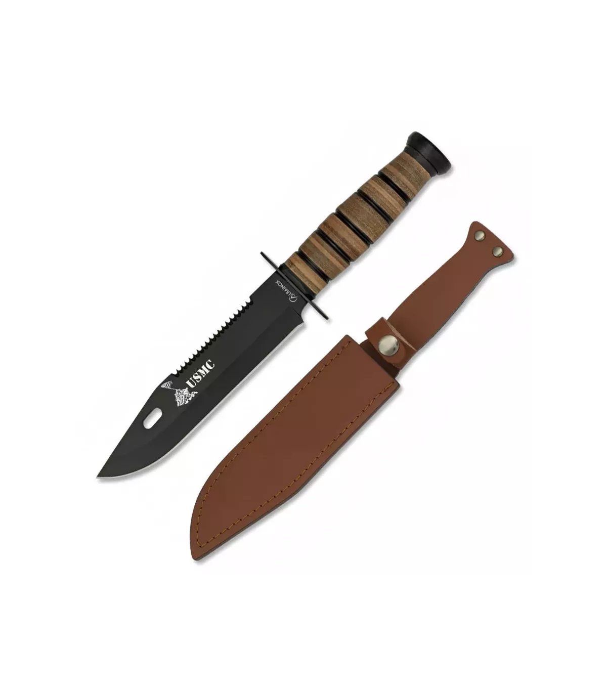 Wacht niet langer en koop nu het Albainox USMC-model mes met getand achtervlak. Met zijn superieure kwaliteit en robuuste ontwerp is dit mes onmisbaar voor elke buitenactiviteit.