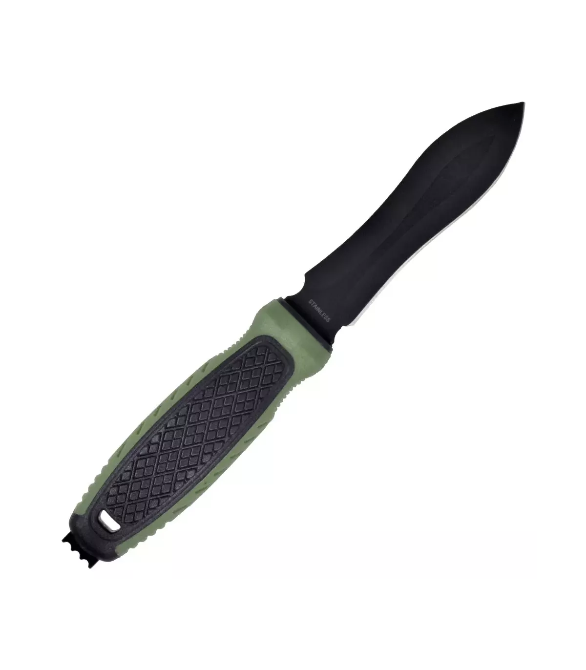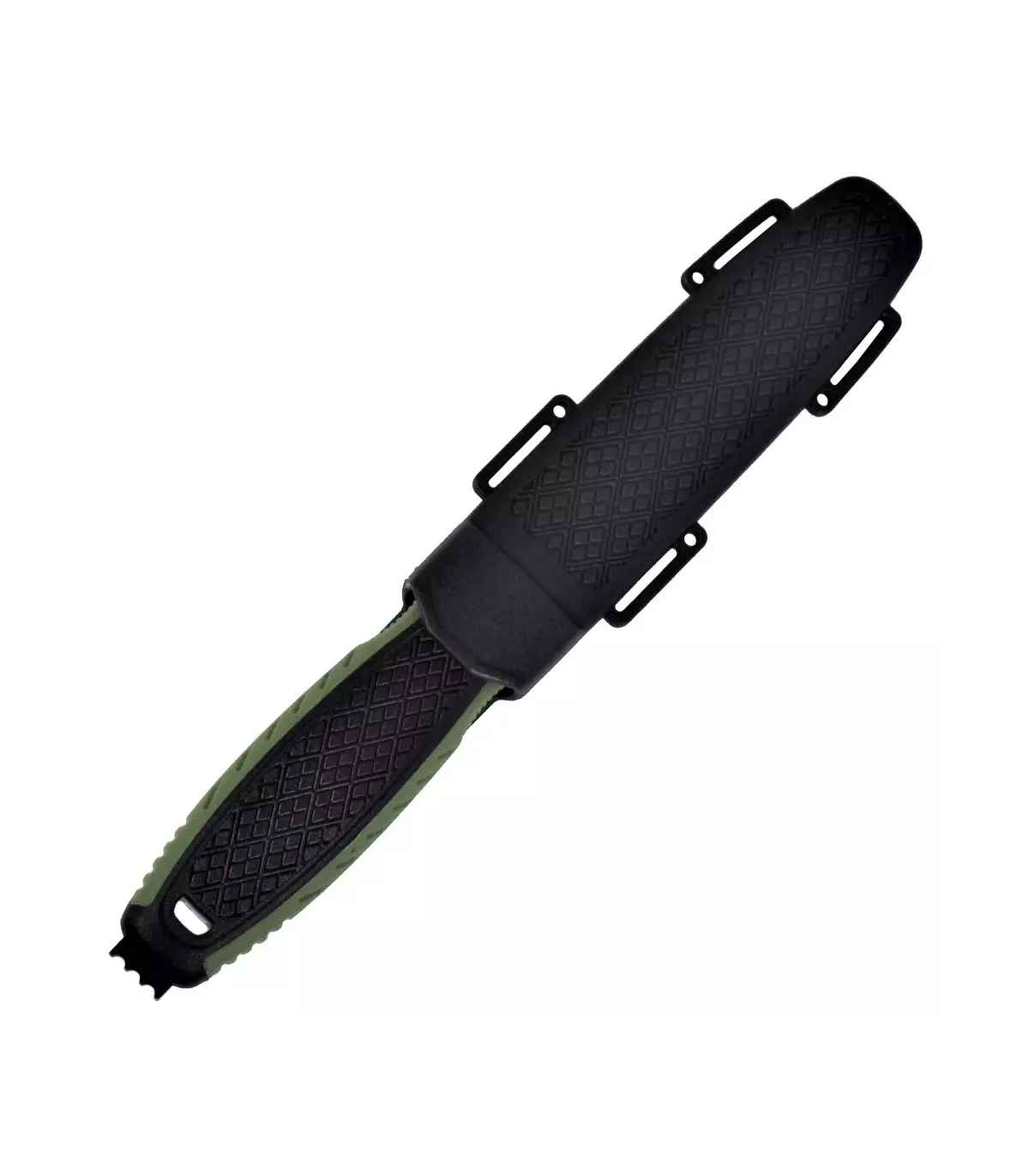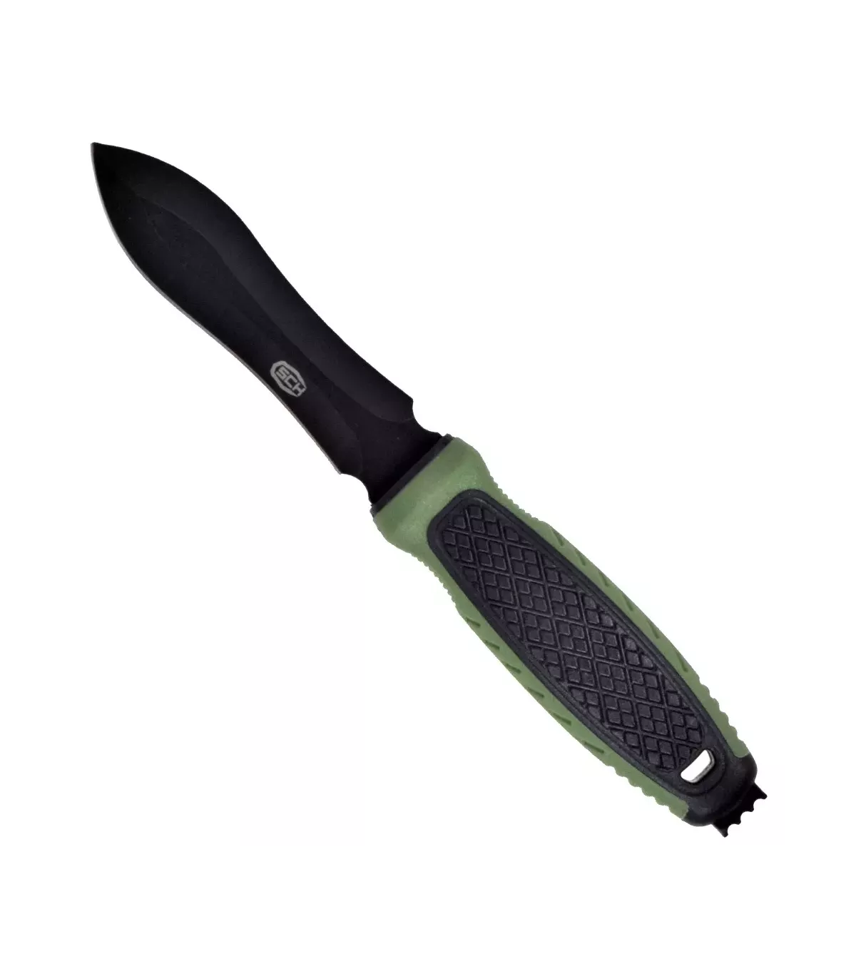 Als u op zoek bent naar een mes voor uw onderwateravonturen, is het enkele snijkant duikmes van SCK de perfecte keuze. Met een kunststof handvat met een rubberen coating in zwart-olijfkleur, biedt dit mes een stevige en comfortabele grip, zelfs onder de meest vochtige omstandigheden. Bovendien wordt het mes geleverd met een hoogwaardig kunststof schede met dijbeugels en een riemclip, waardoor het gemakkelijk toegankelijk en draagbaar is.