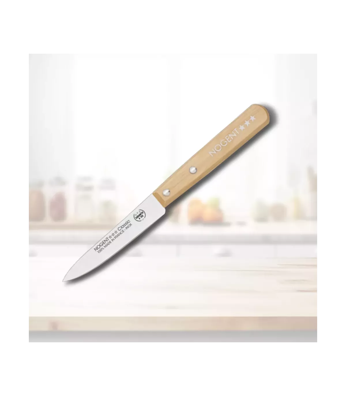 Met een gewicht van slechts 27,80 g is het gemakkelijk te hanteren en te vervoeren, waardoor elke voorbereiding een aangenamere ervaring wordt. Voeg dit klassieke mes van Nogent toe aan uw keukengerei en geniet van een eenvoudigere en stijlvollere voorbereiding bij elk gebruik.