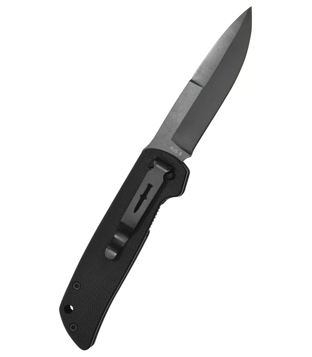 - Hoogwaardige lemmet: Het drop-point lemmet, vervaardigd uit Japans staal AUS-8, heeft een lengte van 7,6 cm en beschikt over een holling voor een precieze snede. De speciale coating van koolstoftitaan biedt het lemmet een grotere hardheid en corrosiebestendigheid, waardoor het langer scherp blijft.