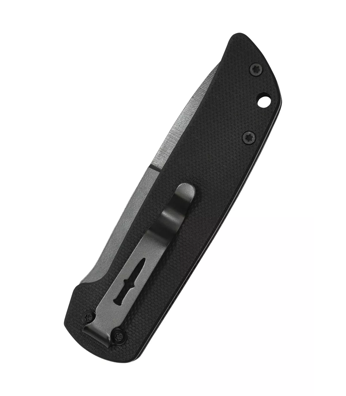 - Ergonomisch ontwerp: Het ruwe handvat, met G-10 schalen in zwart, garandeert een stevige grip onder alle omstandigheden. Daarnaast beschikt het over een praktische lus voor koord en een riemclip, zodat je de mes handig en altijd binnen handbereik kunt dragen.