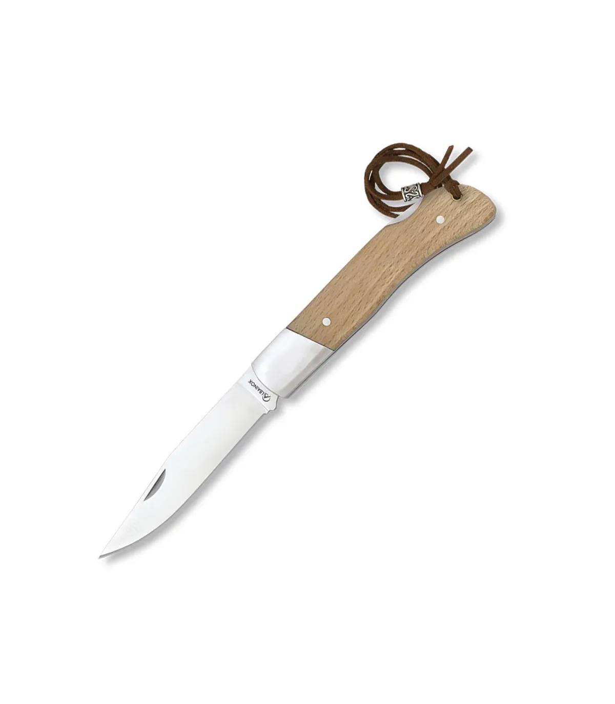 Het lemmet van de AlbaInox zakmes is gemaakt van roestvrij staal 420, een zeer sterk en duurzaam materiaal. Het lemmet heeft ook een satijnen afwerking die het een elegante en verfijnde uitstraling geeft. Het handvat van het zakmes is gemaakt van hout, een licht en duurzaam materiaal. Het handvat heeft ook een polypreen koord dat een comfortabele en veilige grip biedt.