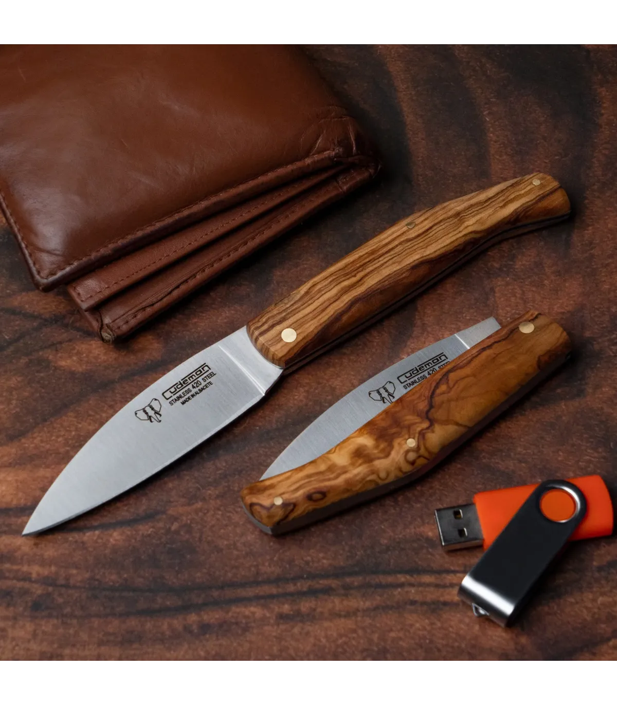 Zakmes van staal 420 met olijfhouten handvat, lemmet 9 cm.