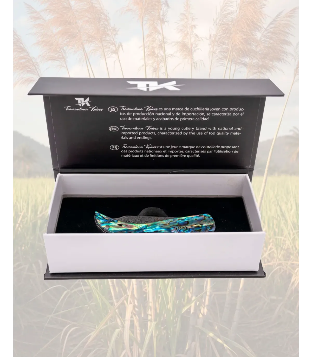 Als je het rustieke mes Tramuntana Knives met een handvat van abalone en hars wilt kopen, kies je voor een mes dat nautische elegantie en nauwkeurige bediening combineert, ontworpen voor wie waarde hecht aan zorgvuldig geselecteerde materialen en met persoonlijkheid afgewerkte producten.