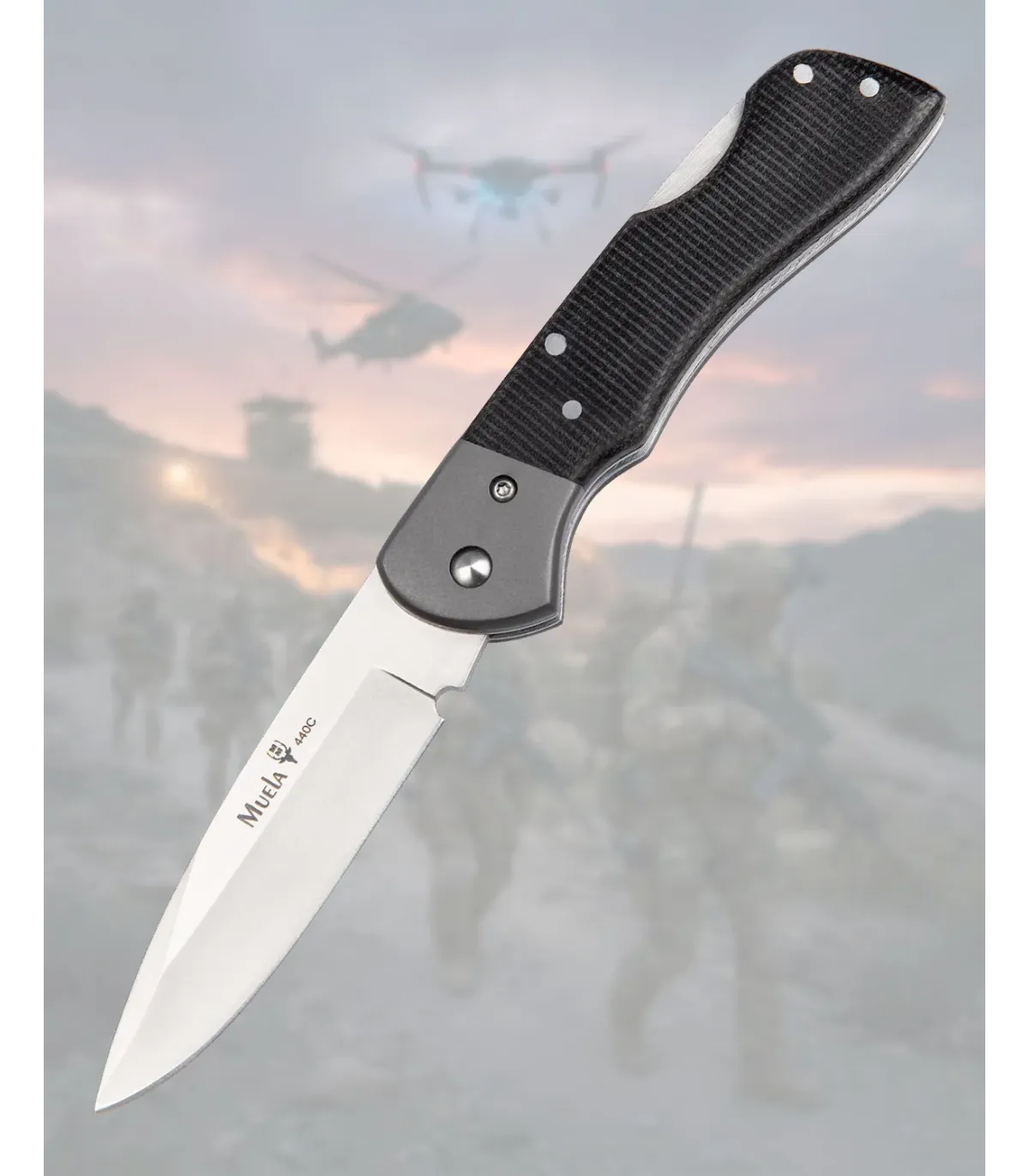 Muela 440C Zwarte Micarta Lock Back Zakmes met Sheath