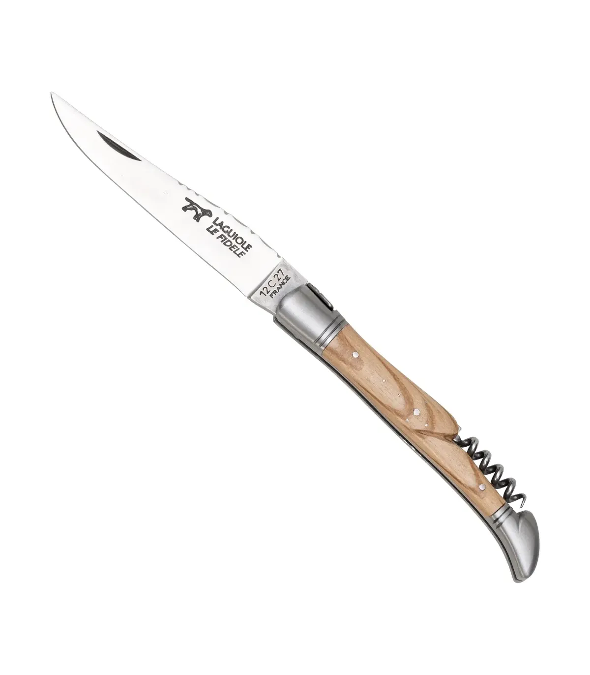 Franse Laguiole zakmes met eikenhouten handvat en kurkentrekker, lemmet 10 cm.