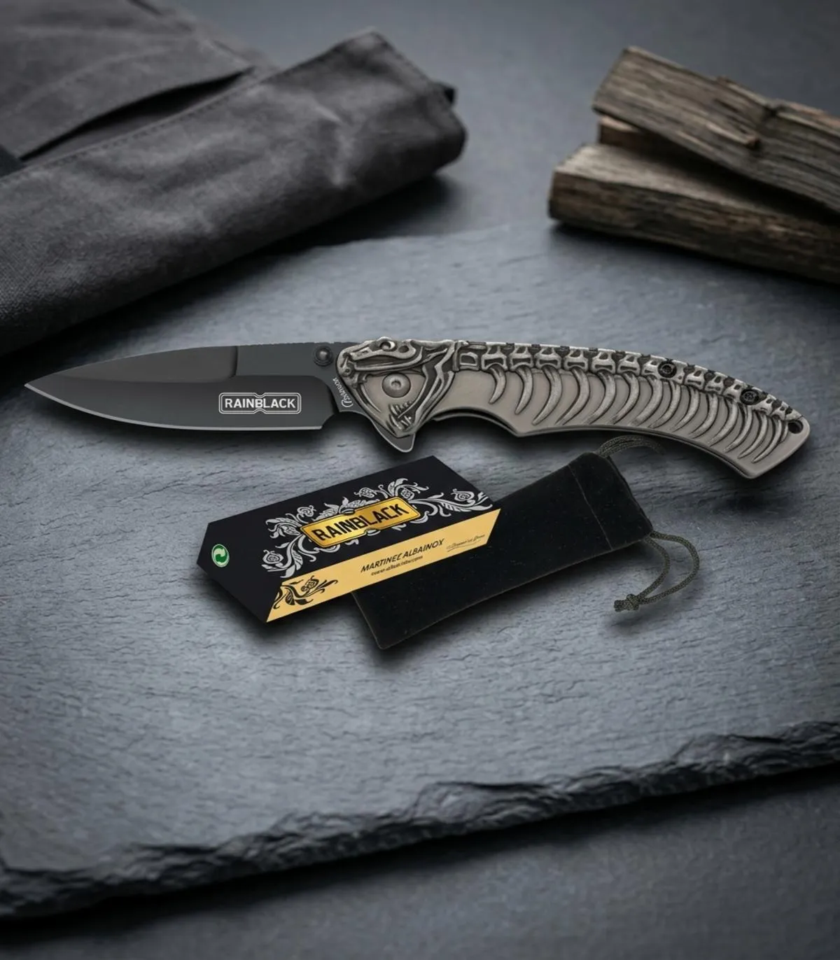 Voel je dat het leven je vastberadenheid, beslissingen en een karakter vraagt dat niet buigt voor de uitdagingen van elke dag? De constante behoefte aan bescherming, precisie en stijl in je bewegingen is op een punt gekomen waar alleen een betrouwbare bondgenoot het verschil kan maken. In die zoektocht verschijnt een voertuig voor verandering dat niet alleen voldoet, maar ook die sterke en controlerende aanwezigheid versterkt: het Albainox Rainblack veldmes met skelet handvat. Ontworpen voor degenen die hun gedurfde geest willen weerspiegelen, combineert dit gereedschap weerstand, esthetiek en functionaliteit in één gebaar. Het Rainblack afwerking en het reliëf ontwerp dat aan de botstructuur doet denken, laten je opvallen, waarbij je een profiel van kracht en stijl toont dat respect heeft voor jouw acties en jouw meest veeleisende smaken.