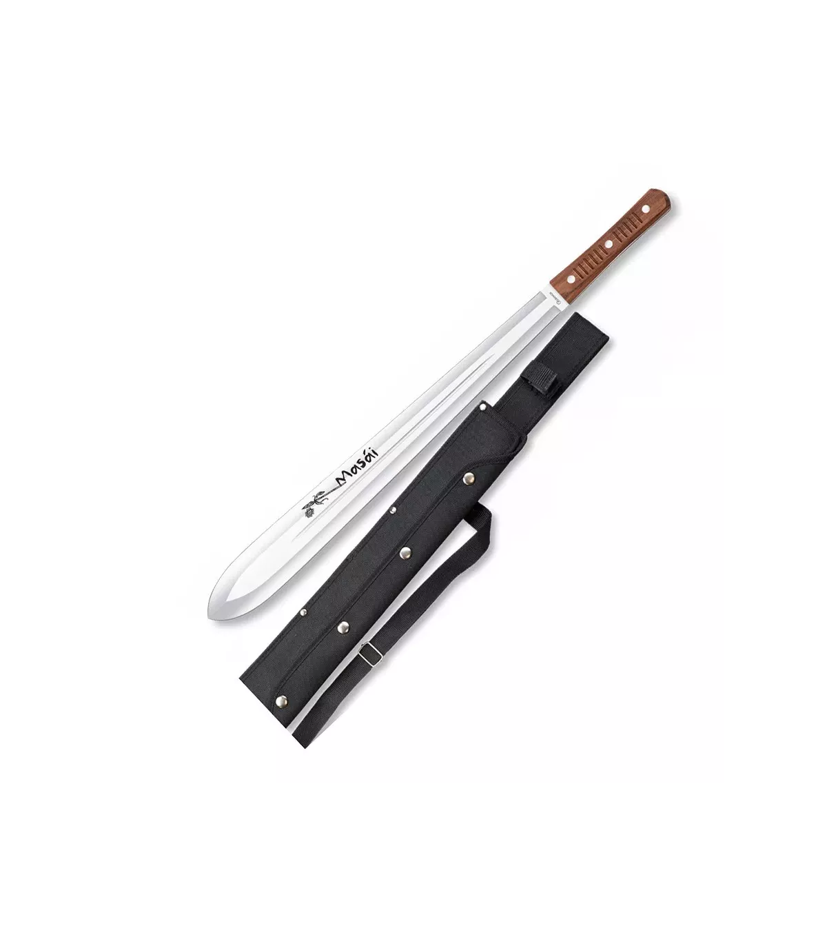 Met een totale lengte van 62,50 cm en een gewicht van 395 gram is de Masai Machete uitgebalanceerd en gemakkelijk mee te nemen. Daarnaast wordt hij geleverd met een zwarte nylon schede, zodat u hem veilig en beschermd kunt dragen.