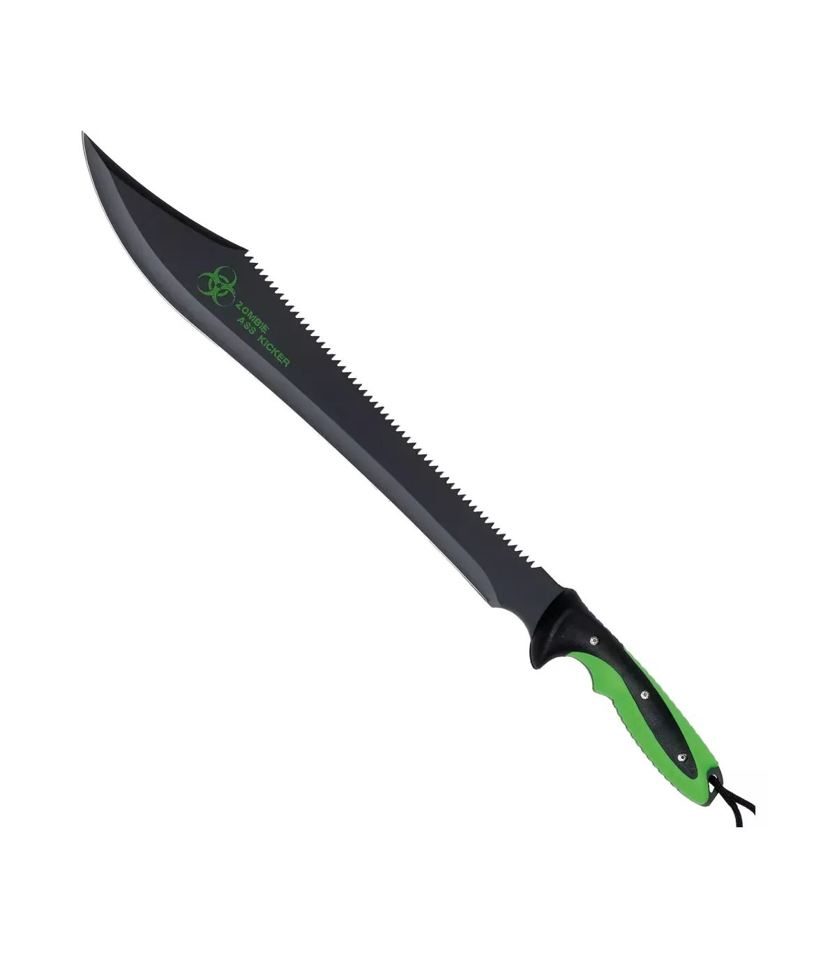 Bereid u voor om elke uitdaging aan te gaan met de tactische machete met zwarte snijkaans Zombie Dead! Dit wapen is niet zomaar een machete, het is uw trouwe metgezel in extreme situaties. Laat me u vertellen waarom deze machete de perfecte keuze voor u is: