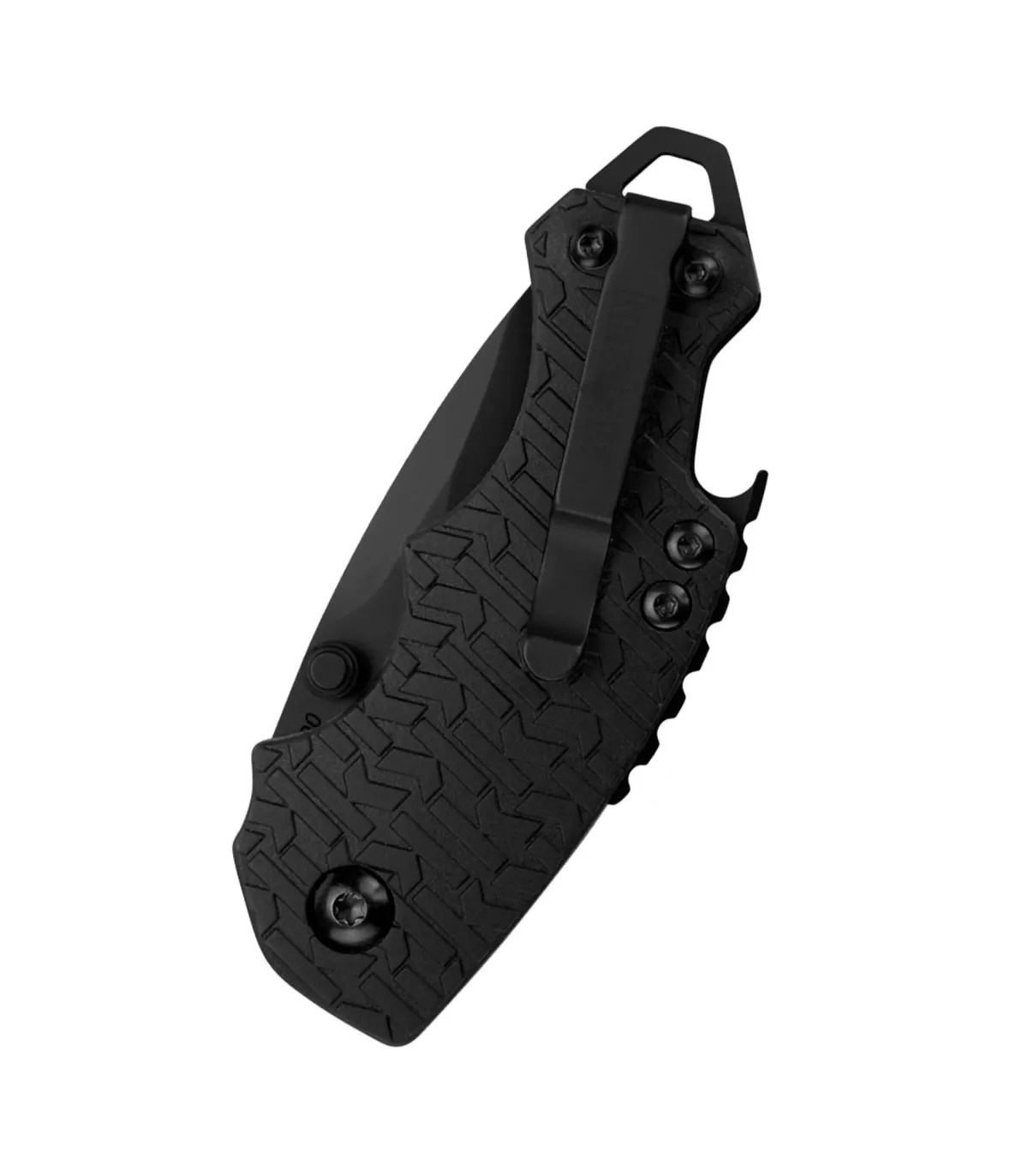 Multifunctioneel zakmes Kershaw model Shuffle Zwart. De Shuffle heeft ook nog enkele extra trucjes onder de mouw. Er is een platte schroevendraaier aan de achterkant van het mes die ook dienst doet als een koordaccessoire, en een praktische flesopener geïntegreerd in de achterkant van het mes.