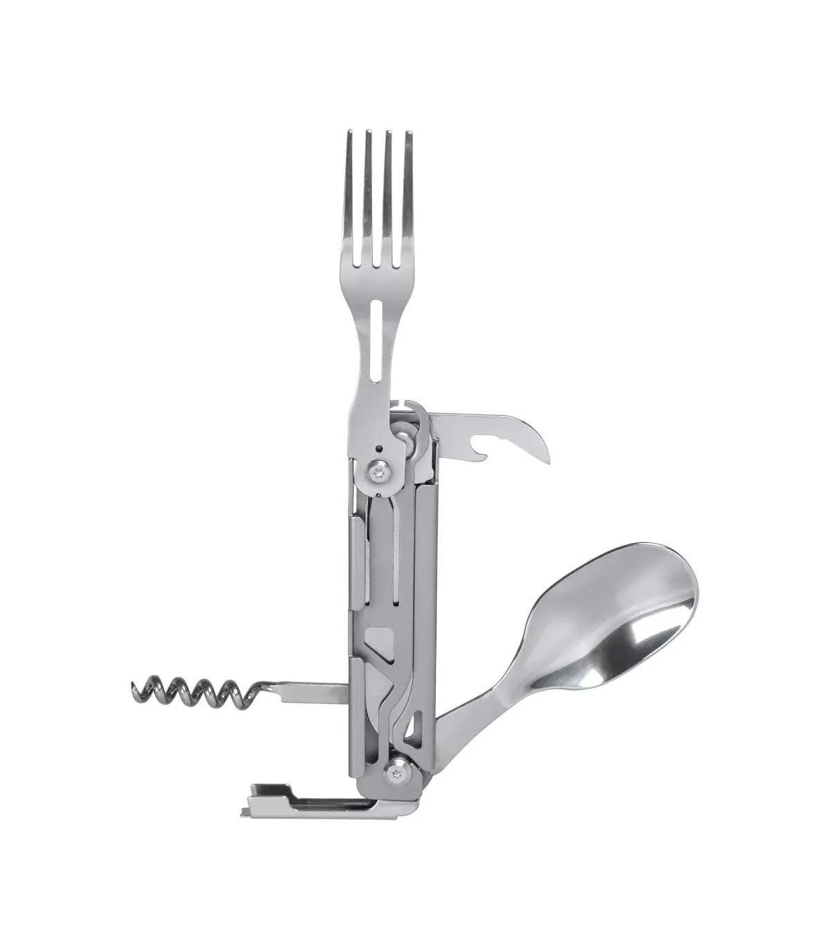 - Inclusief Meerdere Gereedschappen: Naast het lemmet beschikt het over een vork, lepel, kurkentrekker, blikopener en flesopener, alles in een compact ontwerp.
