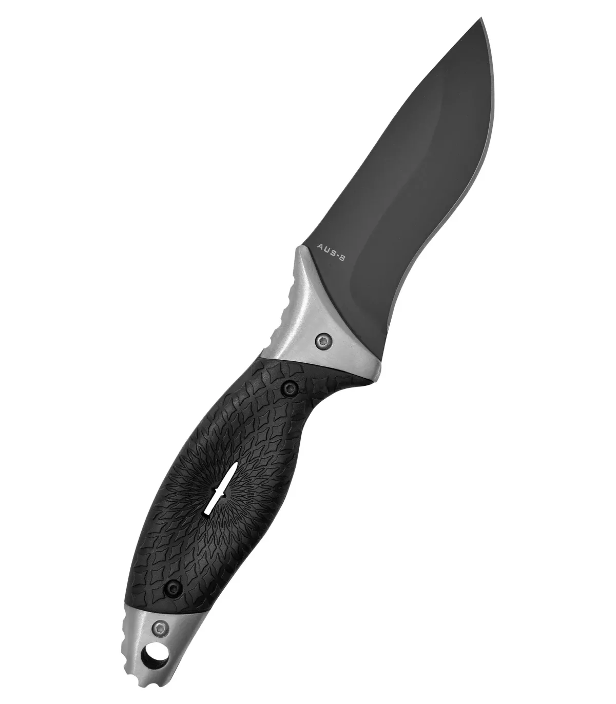 - Rvs-8 lemmet: Het lemmet, met een lengte van ongeveer 10,2 cm, is gemaakt van Rvs-8 staal, bekend om zijn sterkte en duurzaamheid. De titanium carbonitride coating biedt extra bescherming tegen roest en corrosie, waardoor het lemmet scherp blijft, zelfs na vele sneden en onder moeilijke omstandigheden.