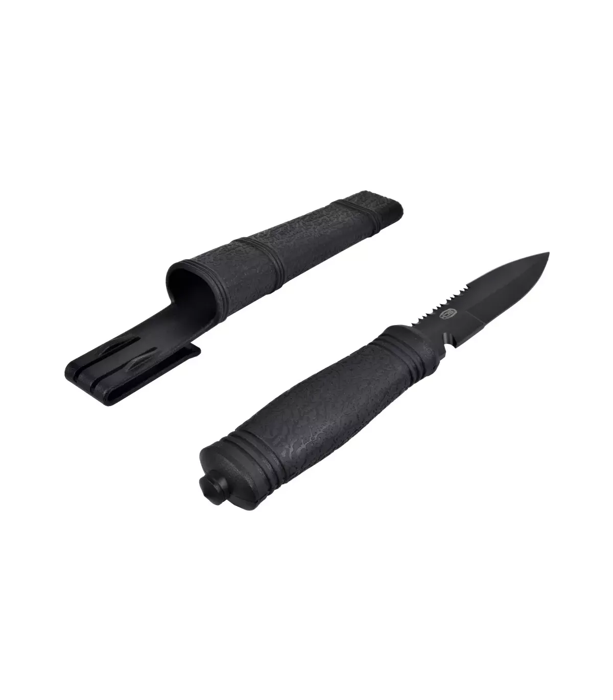 Dit enkel snede avontuurmes van SCK is een onmisbaar gereedschap voor elke avontuurlijke liefhebber. Het zwarte roestvrijstalen lemmet en het kunststof handvat met rubberen coating maken het mes stevig en gemakkelijk te hanteren. Daarnaast wordt het geleverd met een stevige kunststof schede met riemclip voor veilig en comfortabel vervoer. Met een totale lengte van 235 mm (240 mm met schede) en een gewicht van slechts 110 g (145 g met schede), is dit mes een uitstekende keuze voor elke buitensportactiviteit, of het nu kamperen, wandelen of jagen betreft.