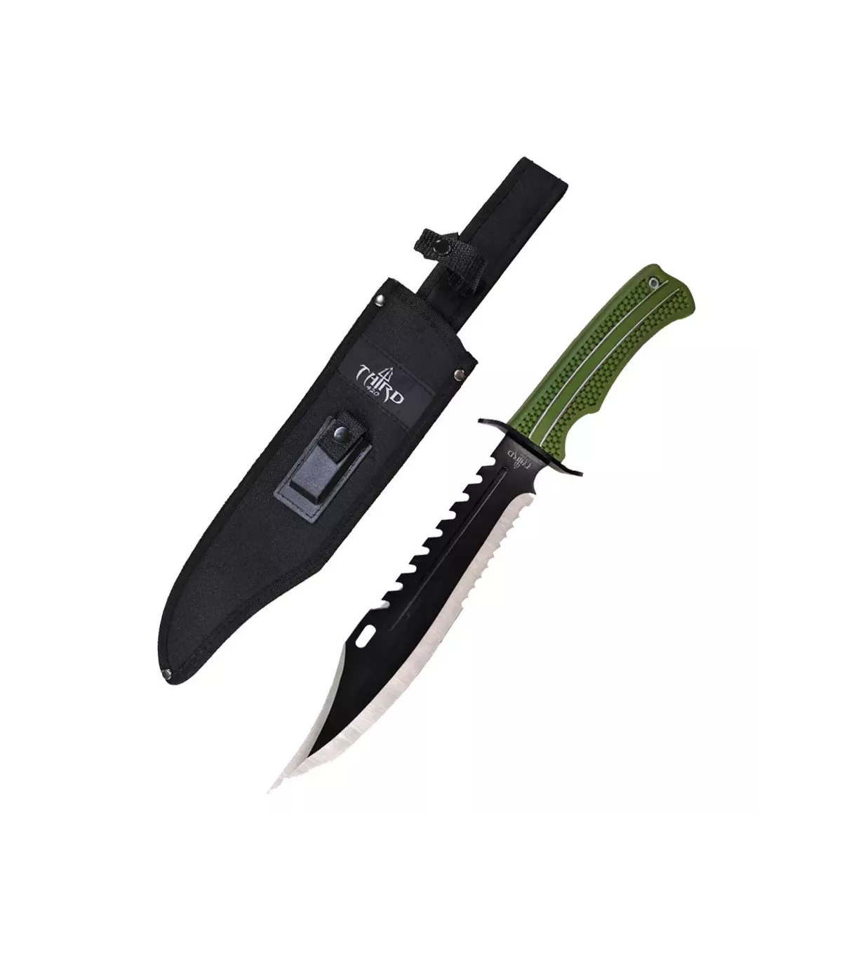 Het groene ABS-handvat biedt een veilige en comfortabele grip, waardoor het een gemakkelijk te hanteren gereedschap is, zelfs in de meest extreme situaties. Bovendien maakt de meegeleverde nylon schede het mogelijk om uw mes veilig en handig te vervoeren, zodat het altijd binnen handbereik is.