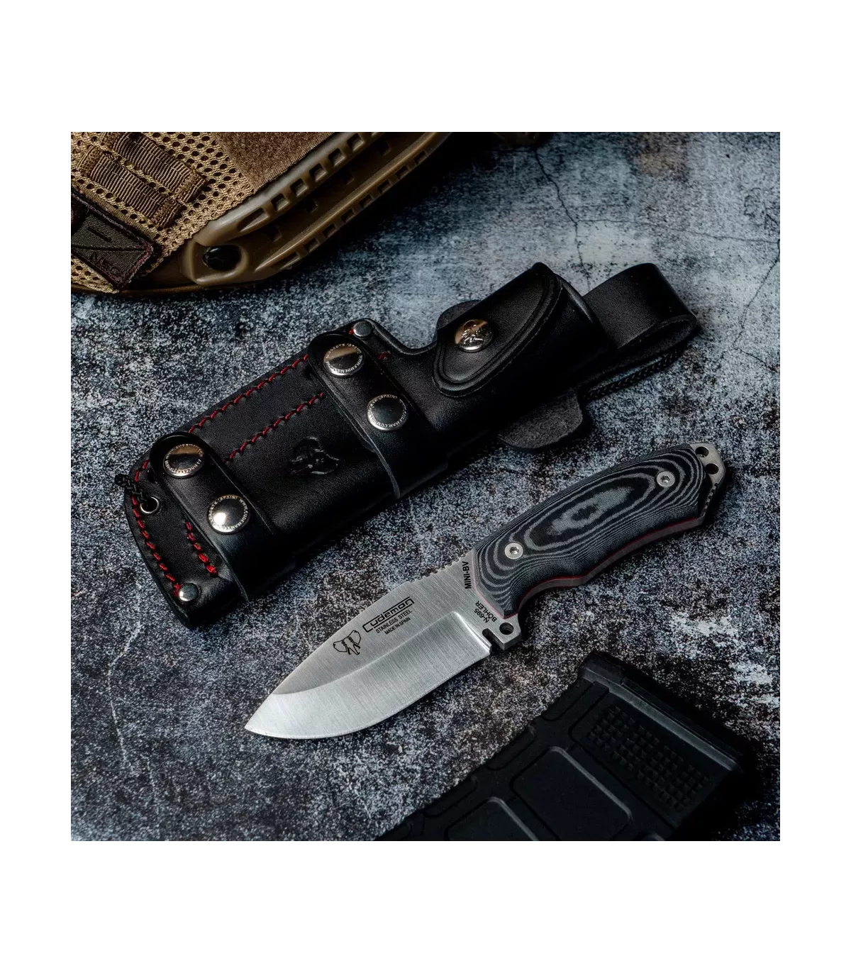 Dit mes is vervaardigd uit hoogwaardige materialen en wordt geleverd met een leren schede zodat u het veilig en comfortabel kunt vervoeren. Het ergonomische ontwerp en het comfortabele handvat stellen u in staat het lange tijd te gebruiken zonder vermoeidheid.