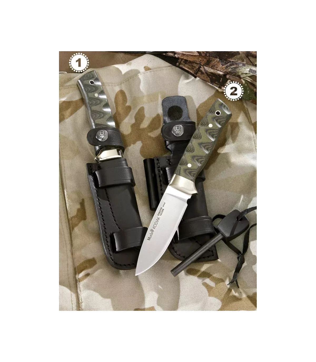 Zoek je een hoogwaardig en duurzaam militair tactisch mes? Het Kodiak militaire tactische meslijn is precies wat je nodig hebt! Met een volledig lemmet van Zweeds Sandvik staal 14C28N, een van de beste staalsoorten ter wereld, is dit tactische mes bestand en bestand tegen elke vorm van slijtage. Bovendien geven het groene Micarta-handvat en de 3D-gefreesde canvas-schalen het mes een elegante uitstraling en een comfortabele grip.