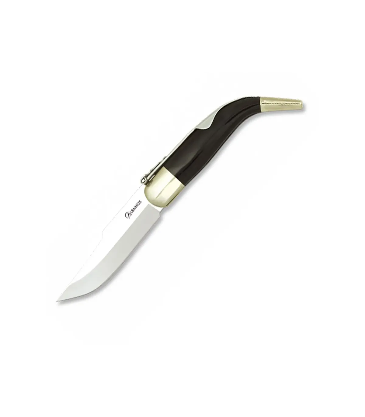 Het klassieke zakmes met zwarte handgreep en palanquilla is veel meer dan een gereedschap; het is een statement van elegantie en functionaliteit. Van het roestvrijstalen lemmet tot het gebogen ontwerp in zwarte stamina en de alpaca-virola, elk aspect is zorgvuldig doordacht om je een uitzonderlijke gebruikservaring te bieden. Als je op zoek bent naar een mes dat klassieke stijl combineert met moderne functionaliteit, zoek dan niet verder. Dit mes staat klaar om je metgezel te zijn bij elke speciale gelegenheid en in je dagelijks leven!
