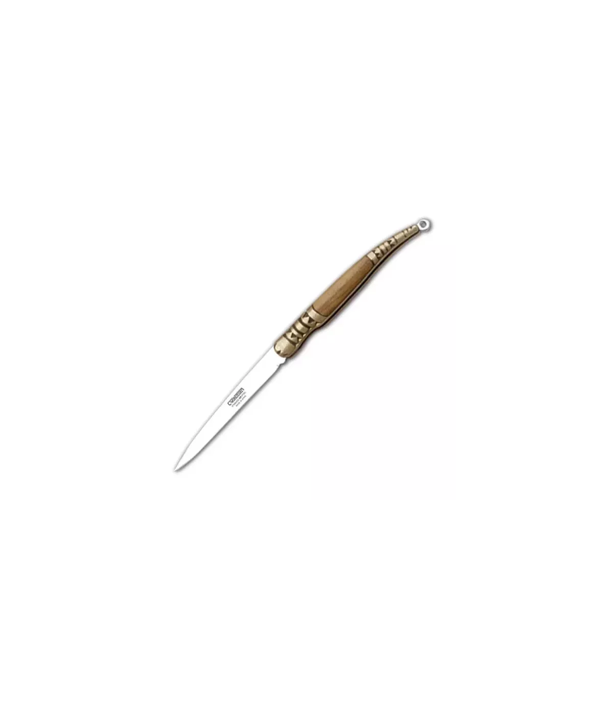 Het handvat van olijfhout geeft niet alleen een verfijnde uitstraling, maar biedt ook een stevige en comfortabele grip. Met een ergonomisch ontwerp past dit zakmes natuurlijk in je hand, waardoor je gemakkelijk precieze en snelle sneden kunt maken.