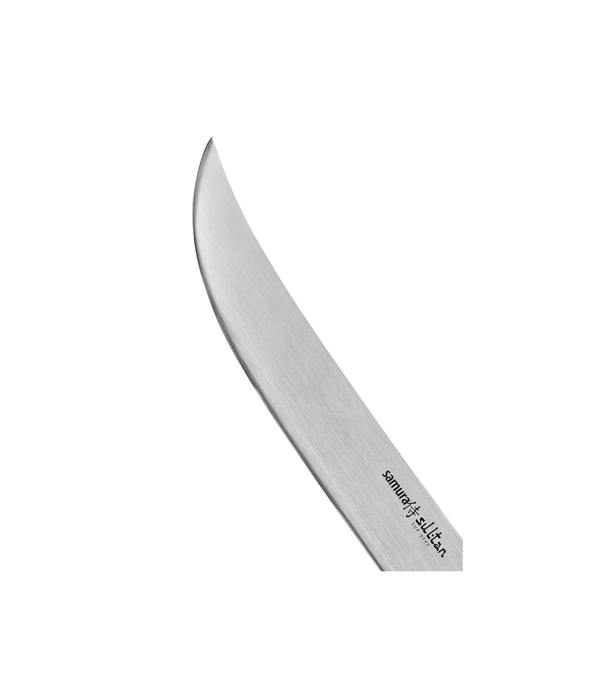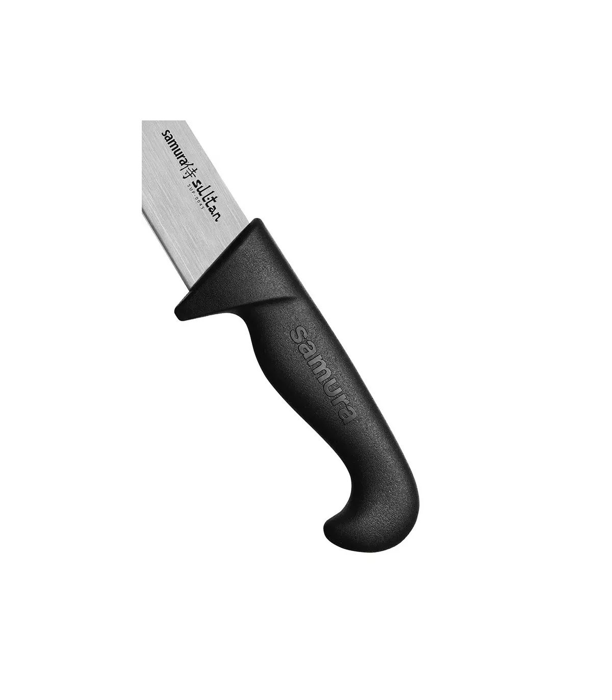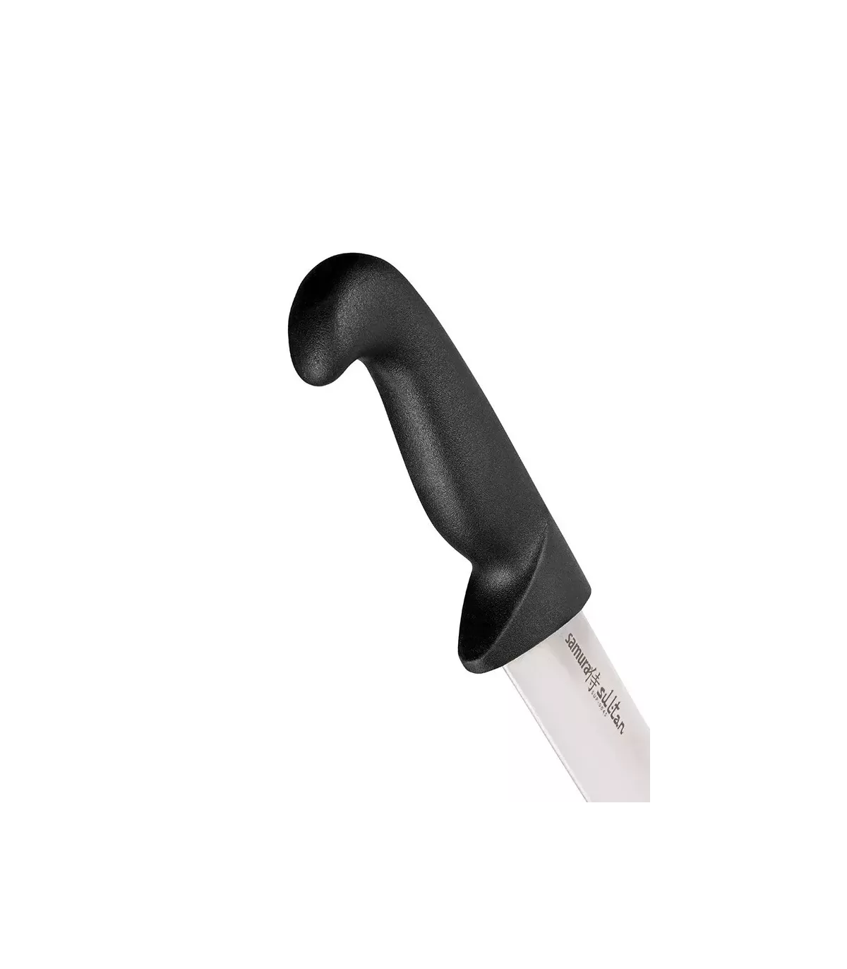 Ontdek het Samura Sultan Pro mes, het geheime wapen om de keuken te veroveren! Met zijn 213 mm lange lemmet en scherpe punt lost u moeiteloos elke culinaire uitdaging op. Snijd met precisie en gemak zelfs de grootste stukken vlees, dankzij zijn hoogwaardig roestvrijstalen lemmet.