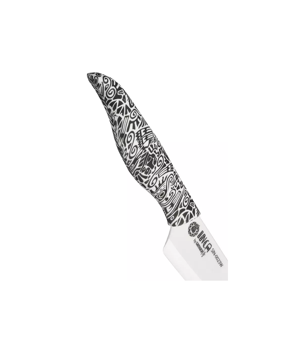 Het keramische mes Utility Samura van de serie INCA is een ideale keuze voor wie op zoek is naar een uitzonderlijke snijervaring. Het scherpe en duurzame lemmet, gecombineerd met een ergonomisch en decoratief handvat, maken van dit mes een functioneel en aantrekkelijk gereedschap in de keuken. Ervaar de fusie tussen oude traditie en moderne technologie met het keramische mes Utility Samura INCA.