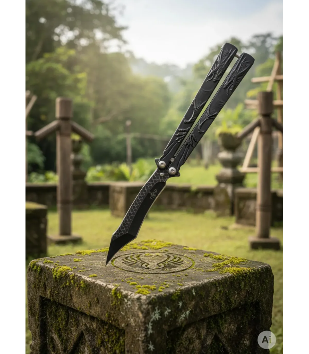Het balisong-mechanisme, met handvatten die veilig over het lemmet vouwen, zorgt voor comfort en veiligheid tijdens het hanteren, en maakt het gemakkelijk om mee te nemen en op te bergen. Het iconische beeld van de draak op het handvat versterkt niet alleen zijn visuele karakter, maar symboliseert ook kracht en bescherming, waardoor dit zakmes een ideaal accessoire is voor wie de kunst van het mes met een symbolische betekenis waardeert.