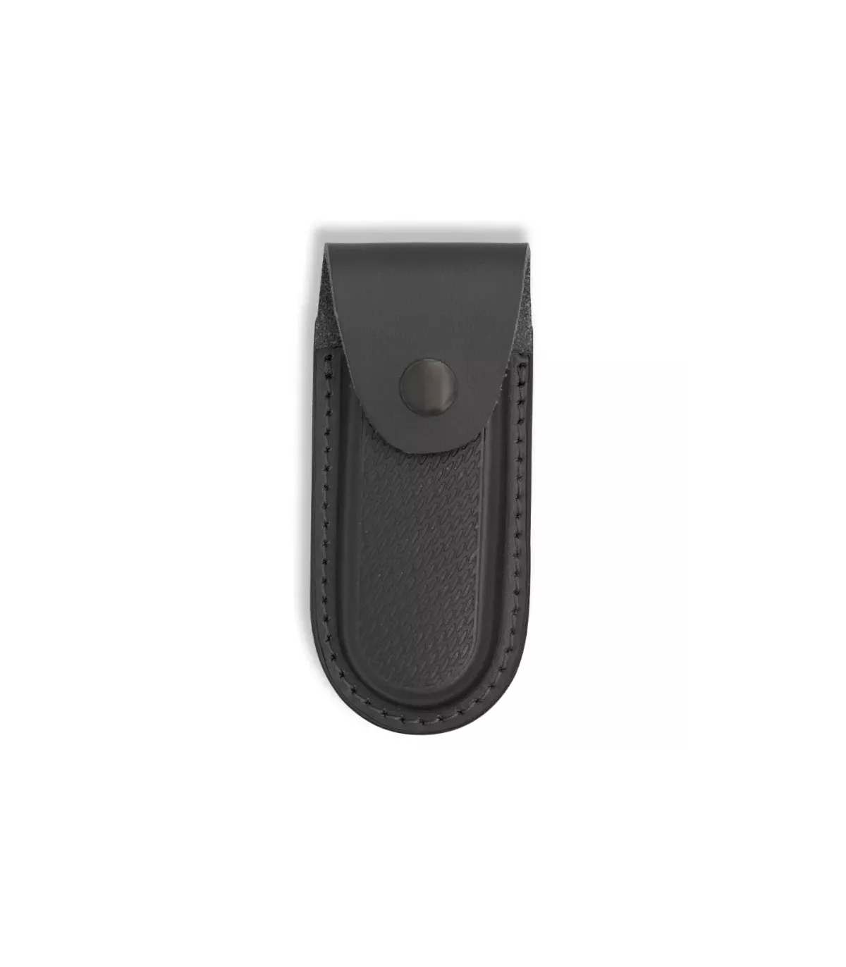 Hardcase van zwart leer voor zakmessen (12x6 cm).