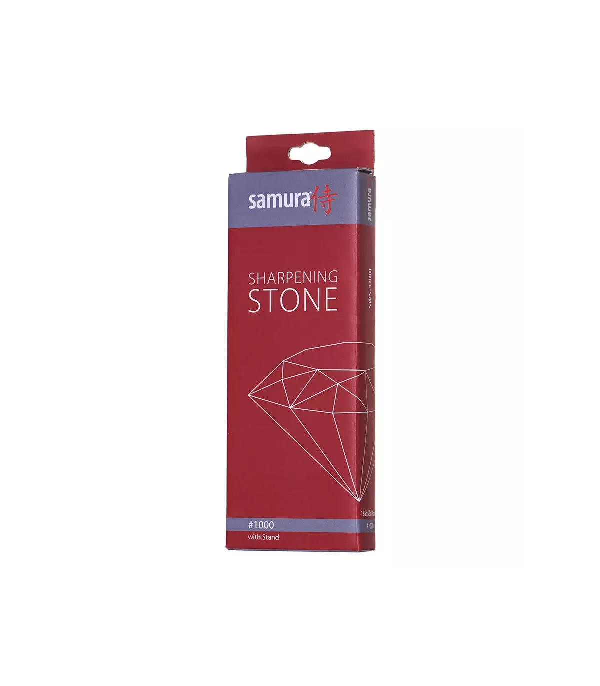Pedra de afiar Samura de grão 1000. As pedras de afiar Samura são adequadas até mesmo para lâminas muito duras com dureza de 58 HRC ou mais. Todos os grãos desta pedra de afiar são completamente homogêneos para garantir um corte uniforme e de alta qualidade. Ao afiar, comece com um grão grosso e depois passe para um grão cada vez mais fino. É ideal se os grãos sucessivos forem cada um de 2 a 3 vezes mais finos.
