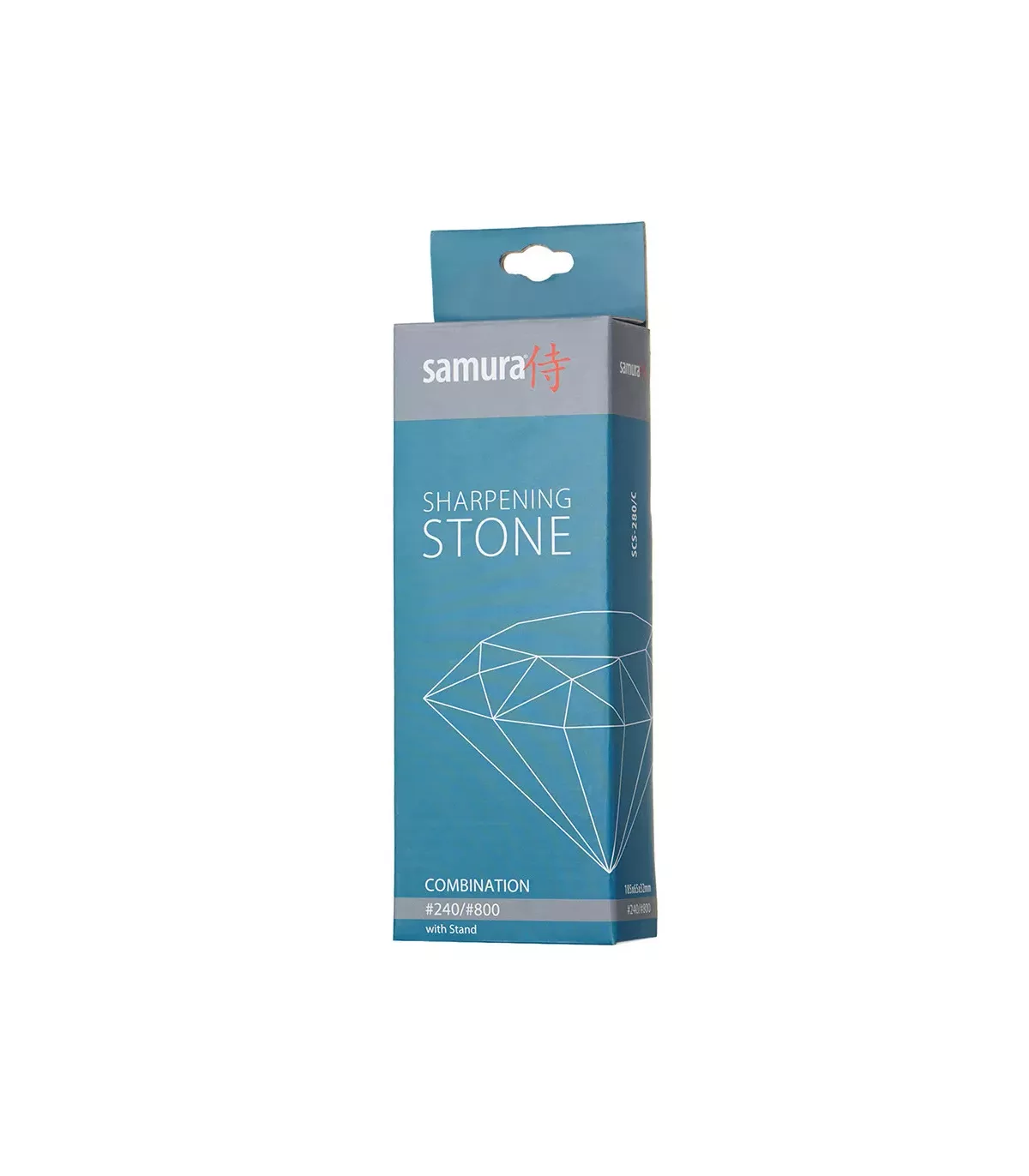 Pedra de afiar Samura de grão 240/800. Com esta pedra de afiar combinada de alta qualidade da Samura, você pode realizar o afiado preliminar e o polimento fino de suas facas, garantindo um resultado excepcional. Com o lado 240, afia sua faca para o trabalho diário de corte. O lado 800 afiará sua faca até a nitidez de uma navalha.