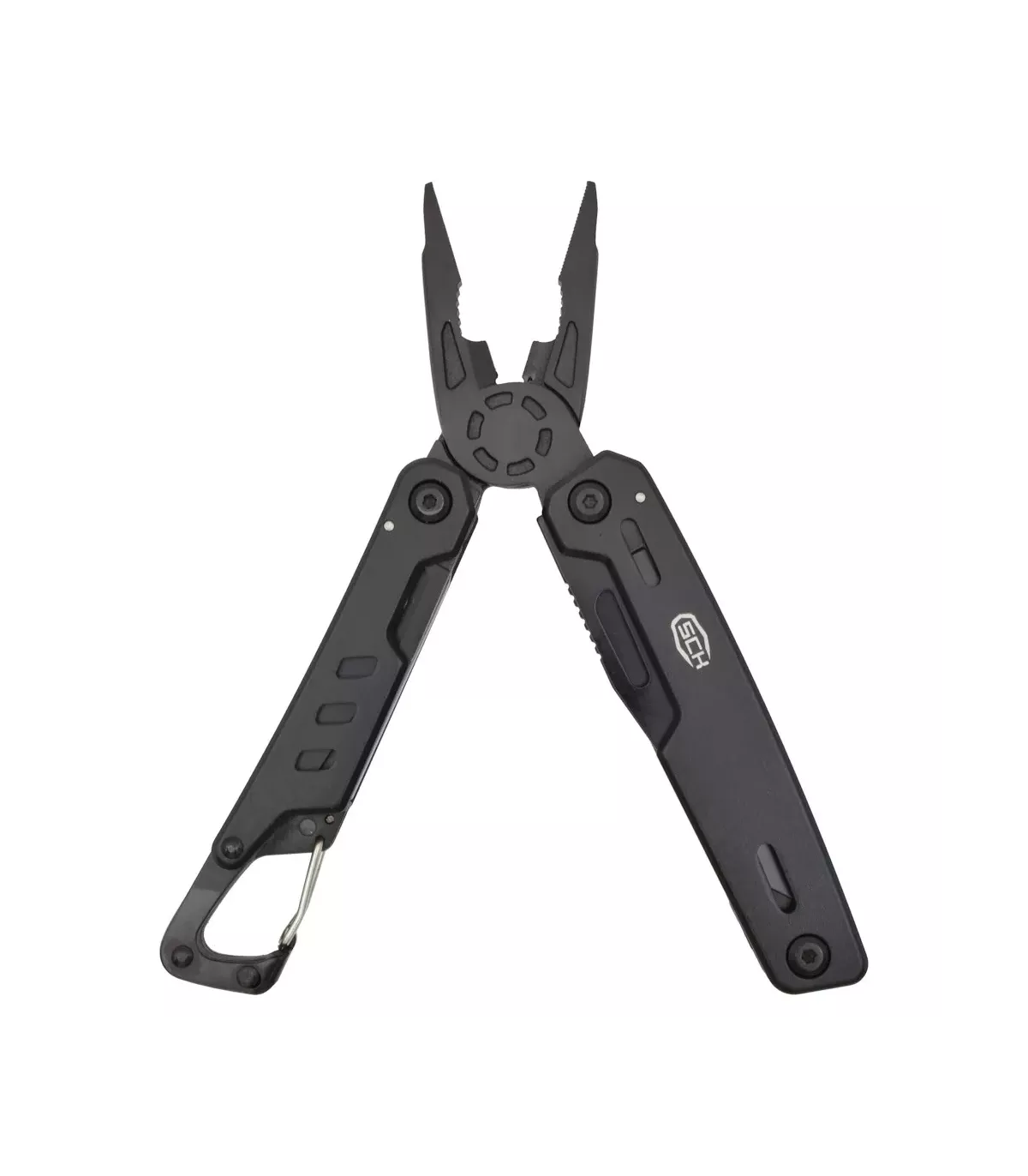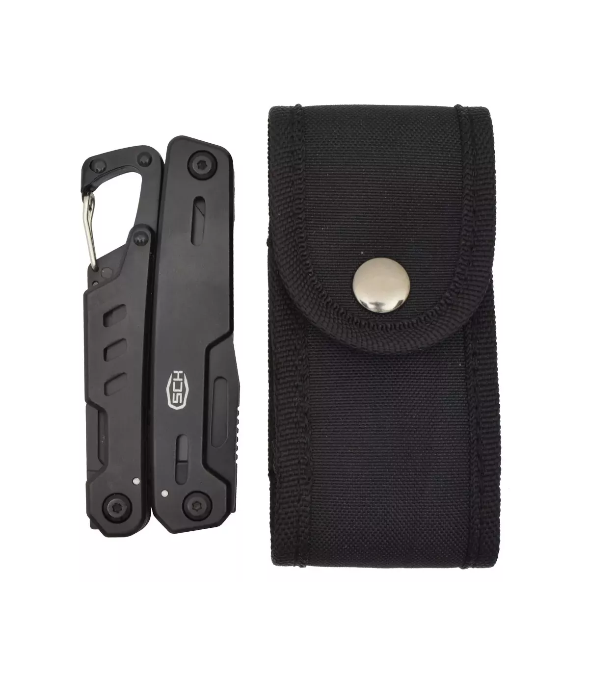 Alicate multiuso SCK com 6 ferramentas incluídas. Este alicate multiuso SCK inclui uma capa de cordura para transporte seguro e um mosquetão que facilita sua fixação e acesso em qualquer lugar.