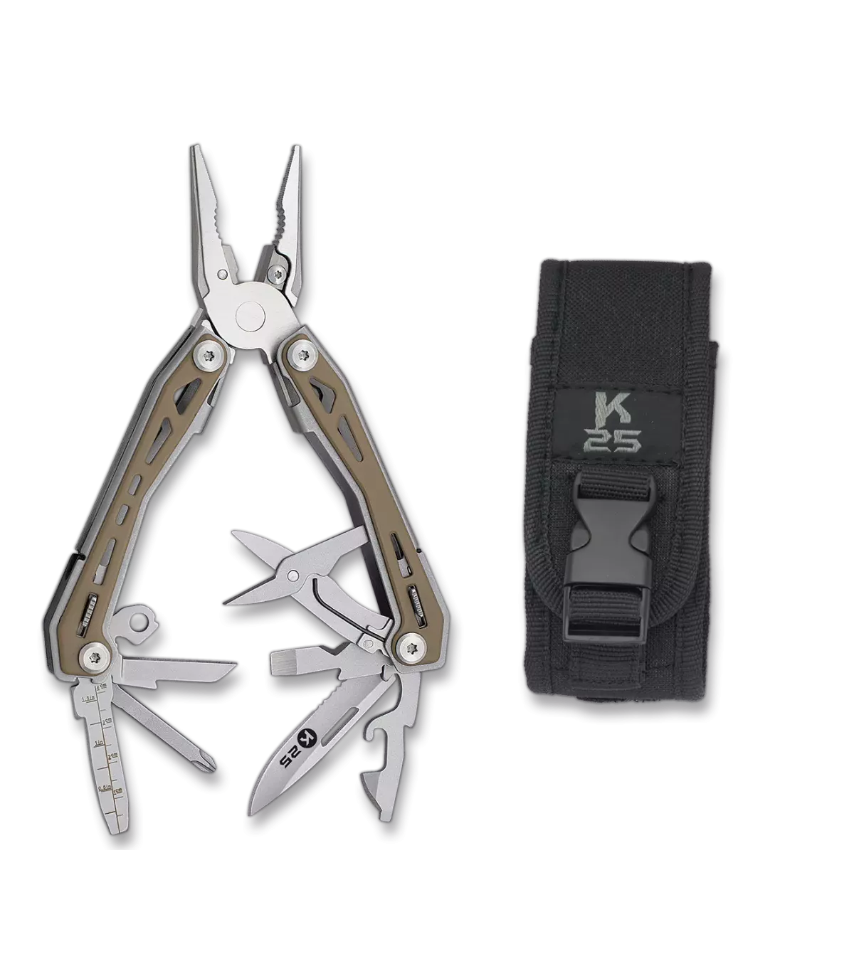 Explore a excelência tática com o alicate multiuso K25 modelo Coyote, uma ferramenta indispensável para qualquer desafio!