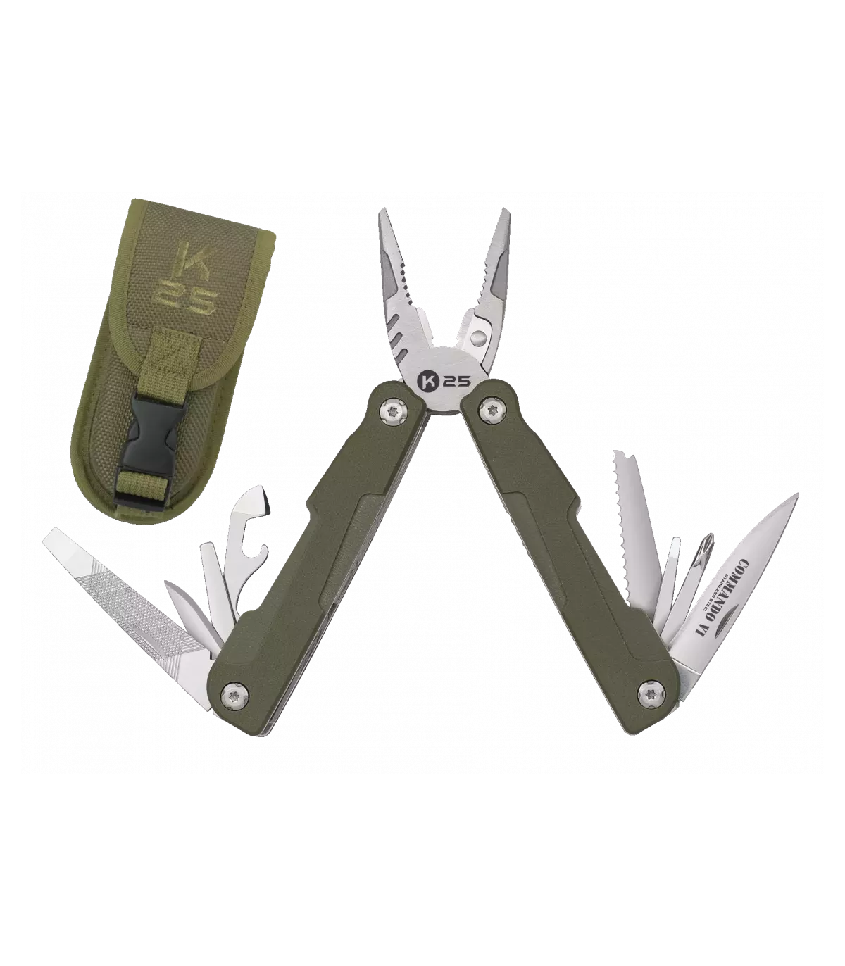 Está procurando uma alicate de qualidade para suas atividades ao ar livre? O alicate Comando VI de K25 em verde é a ferramenta perfeita para você.