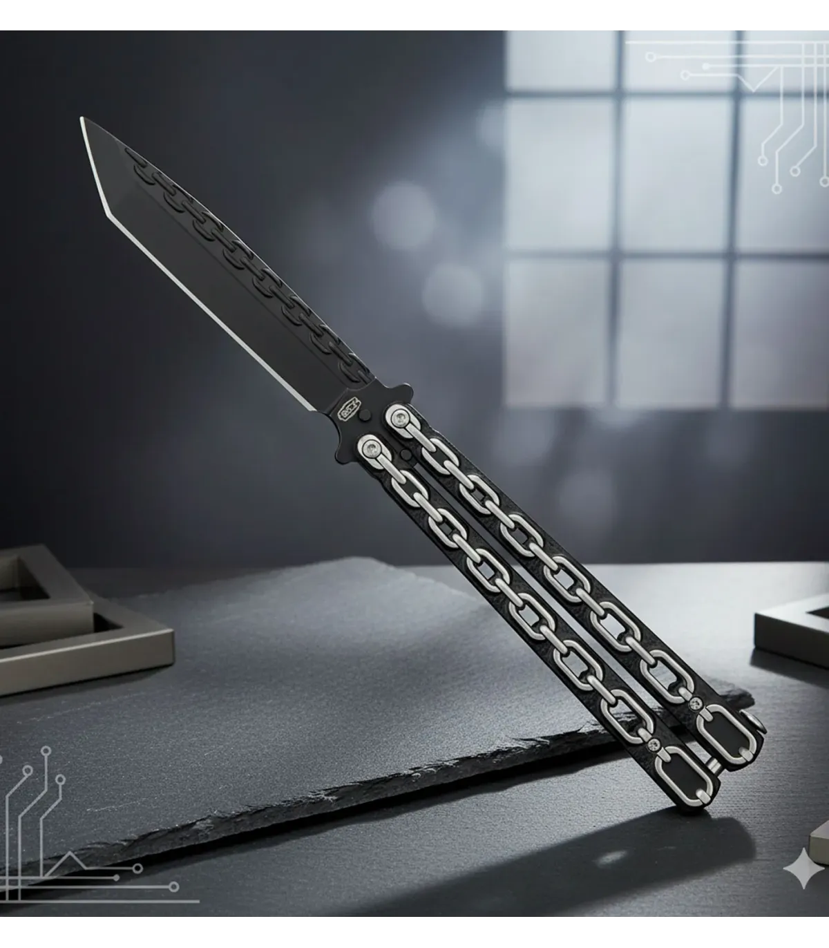 Quer você esteja praticando técnicas de manipulação ou adicionando um elemento impactante à sua coleção, esta canivete borboleta SCK modelo correntes combina estilo e praticidade em um único produto. Perfeita para compradores que desejam uma faca com acabamento fosco moderno e um design resistente que eleva qualquer experiência de manuseio.