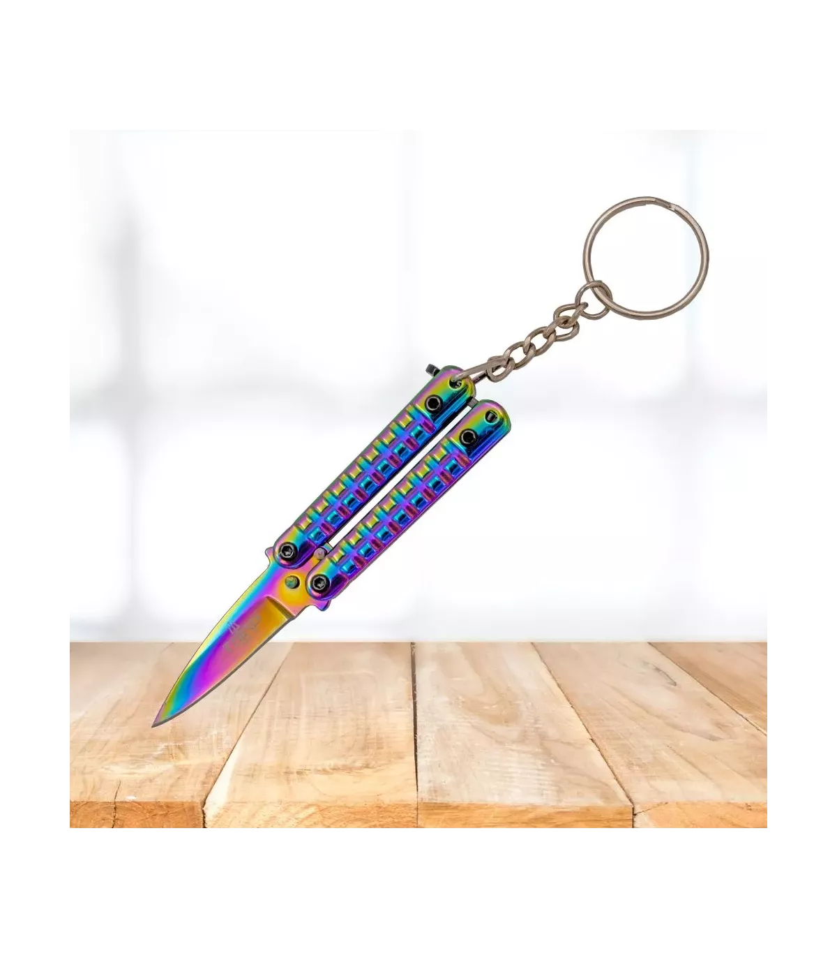 Canivete chaveiro tipo borboleta, arco-íris brilhante