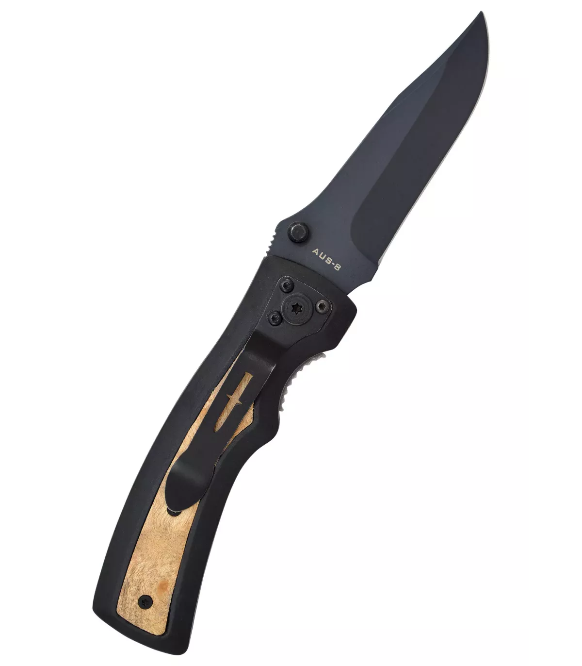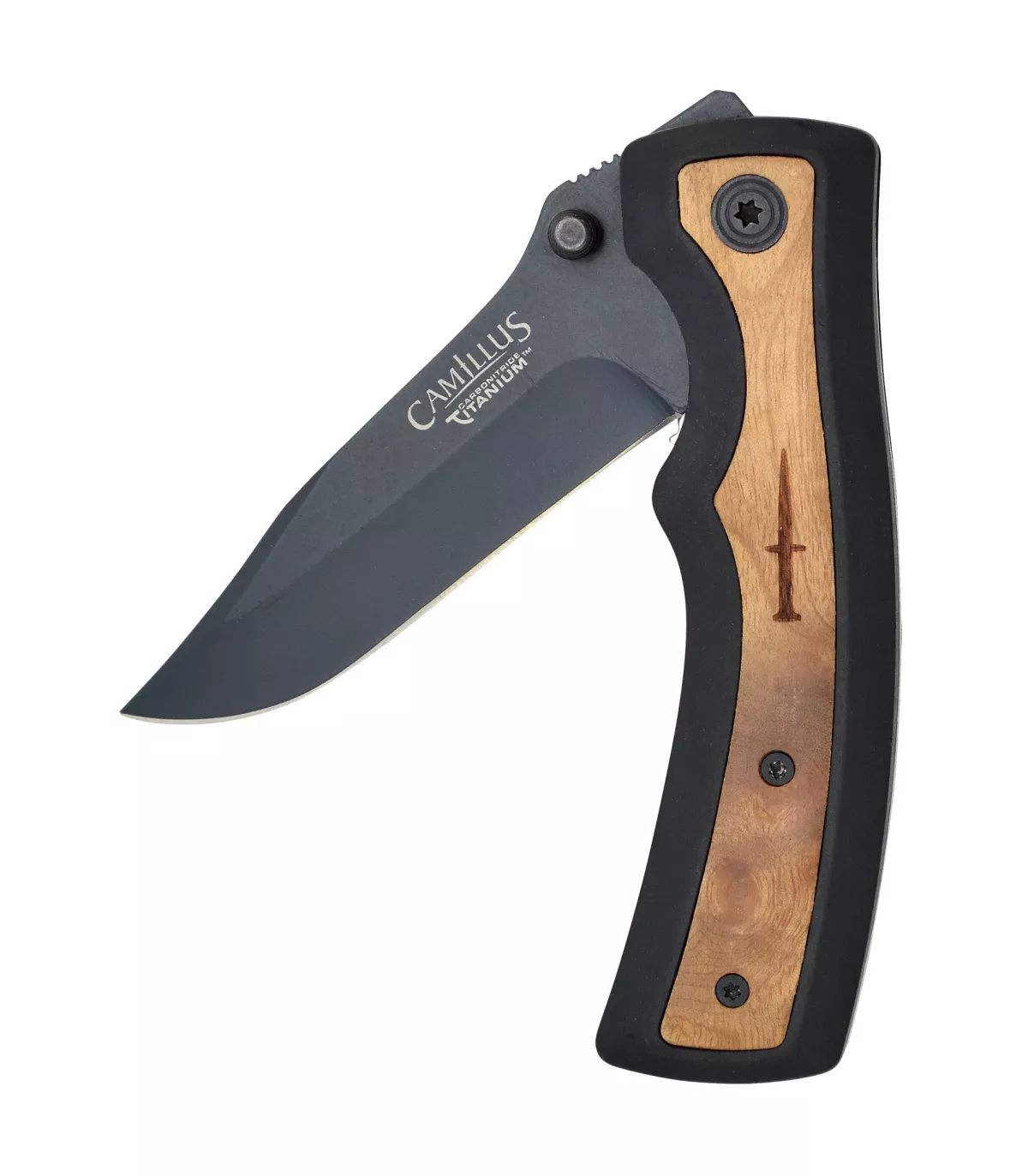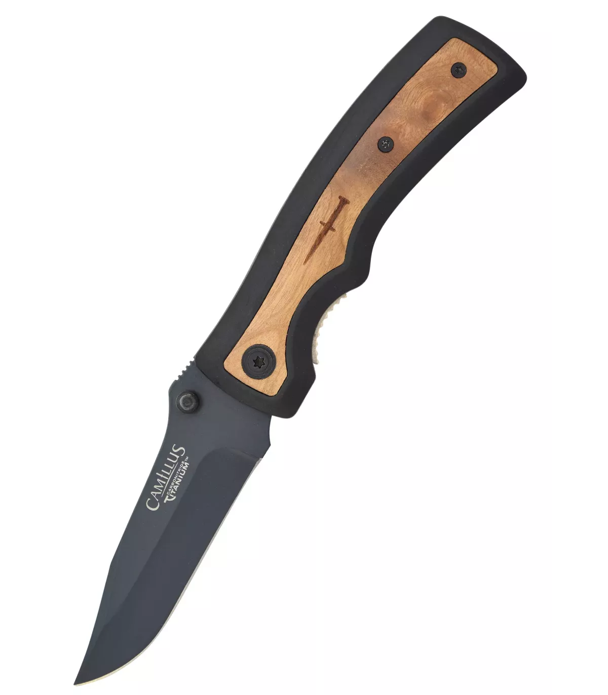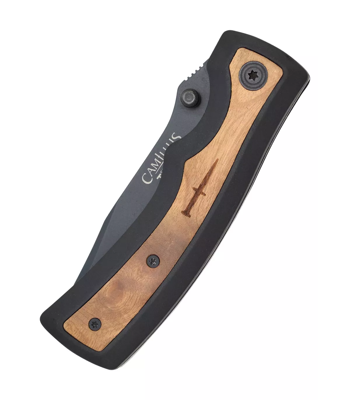 - Mango ergonômico e elegante: O cabo ergonômico do canivete é projetado com inserções de madeira, o que não só lhe confere uma aparência elegante, mas também garante uma pegada confortável e segura. Isso permite um controle preciso durante o uso, independentemente da tarefa que estiver realizando.