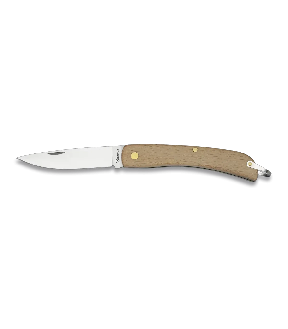 - Cabo de madeira natural: O cabo de madeira confere a este canivete um toque clássico e uma sensação agradável ao segurá-lo. A madeira é resistente e também agrega um apelo estético único.