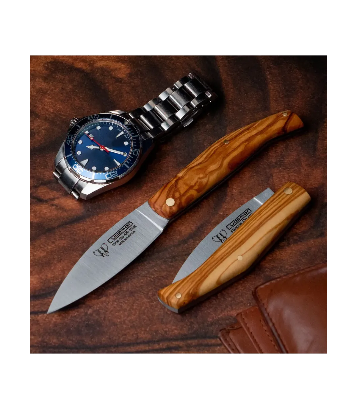 O canivete de bolso com lâmina de 8 cm e cabo de madeira de oliveira é a ferramenta perfeita para qualquer pessoa que procure um canivete de qualidade que dure. É afiado, durável, confortável de segurar e tem um design elegante e clássico.