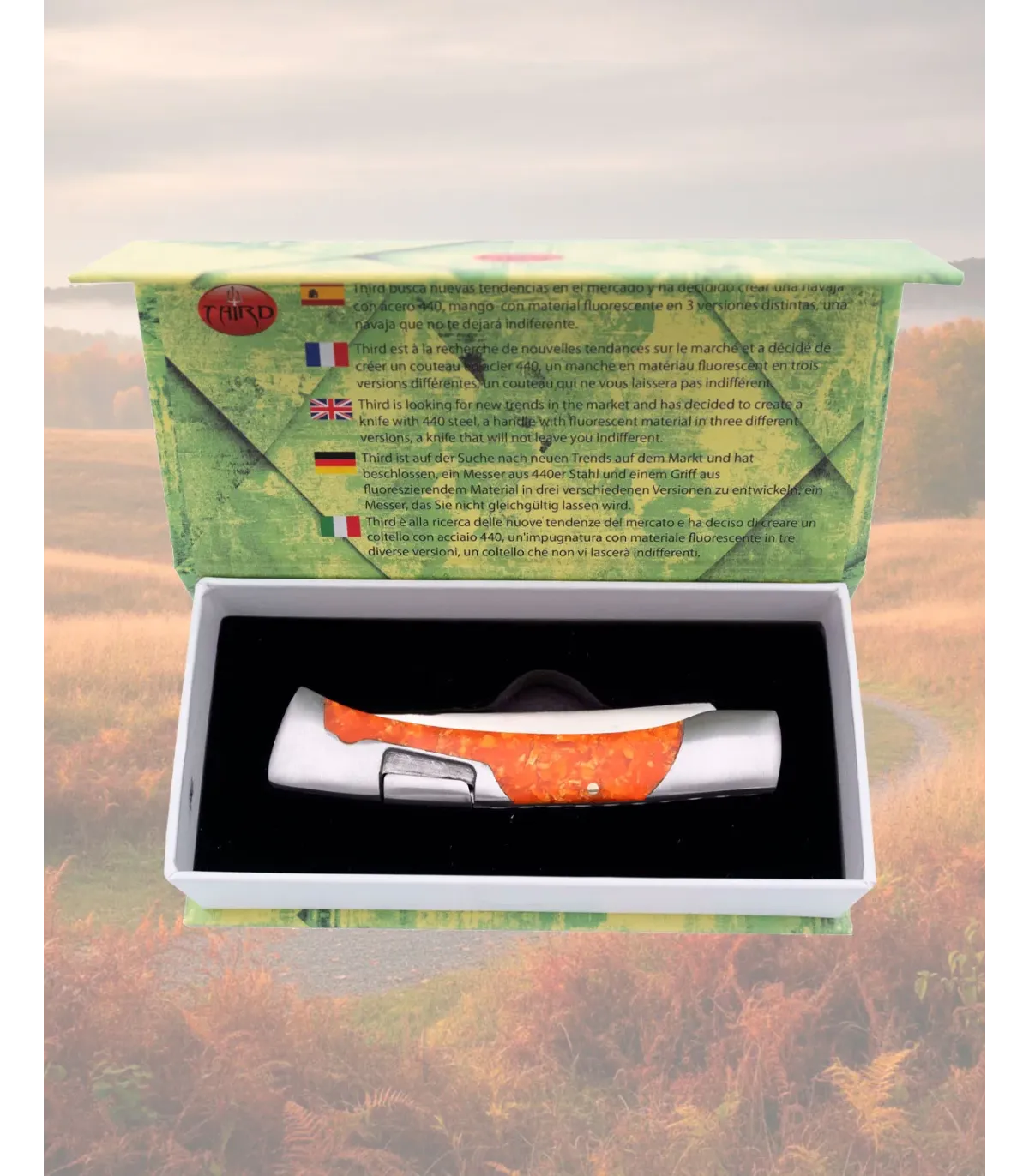 Apresentada em caixa de presente, é prática para conservá-la ou para presentear em ocasiões especiais. Se você quer comprar a Faca Third aço 440 cabo acrílico laranja fluorescente, esta opção combina uma aparência chamativa e funcionalidades pensadas para quem valoriza tanto o design quanto a confiabilidade.