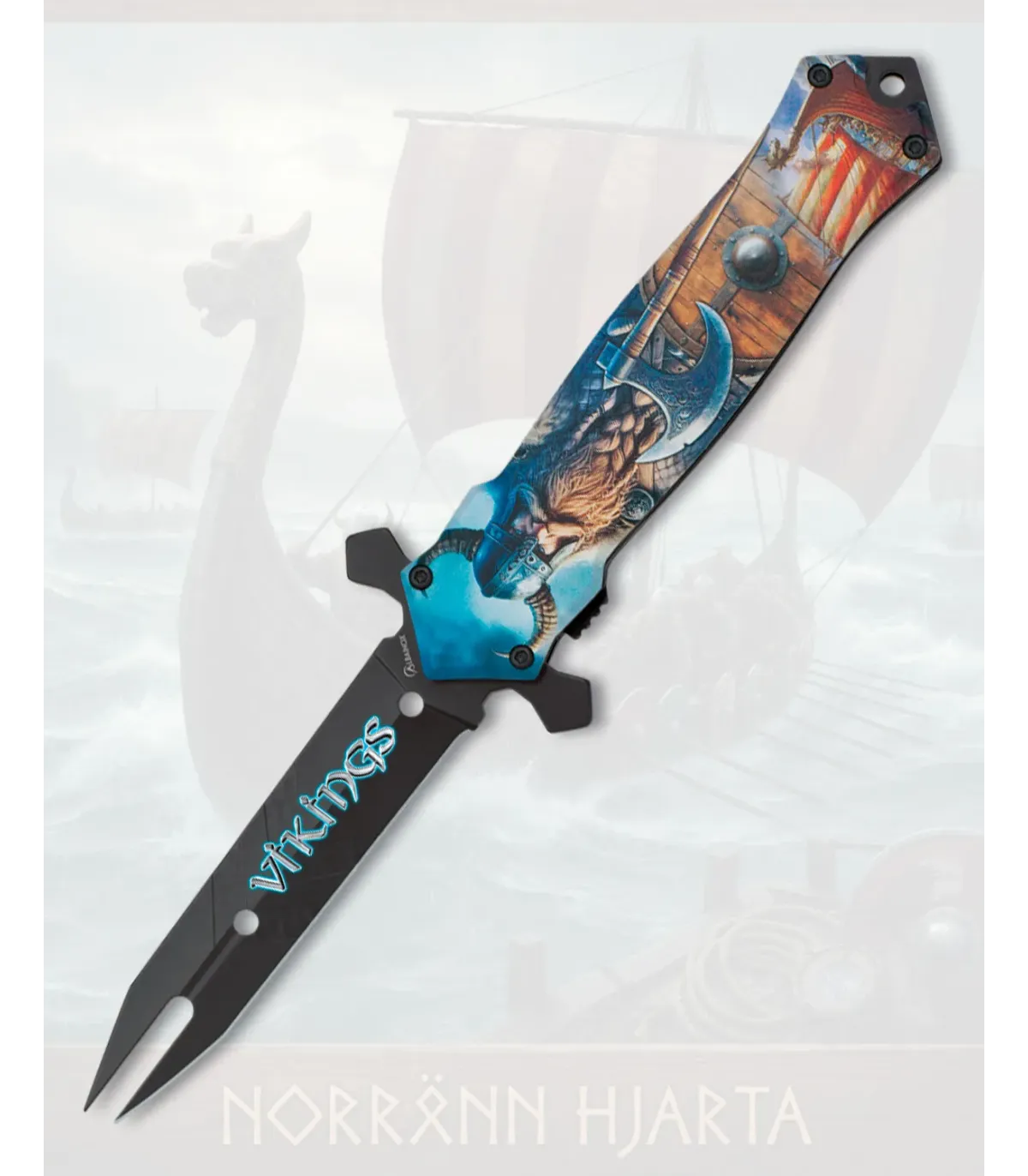 O Canivete Albainox cacha alum. 3D VIKINGS oferece uma presença contundente sem renunciar à funcionalidade, graças à sua lâmina de acabamento preto fosco que mantém um perfil discreto e durável, ideal para quem busca confiabilidade diária com um design que se destaca.