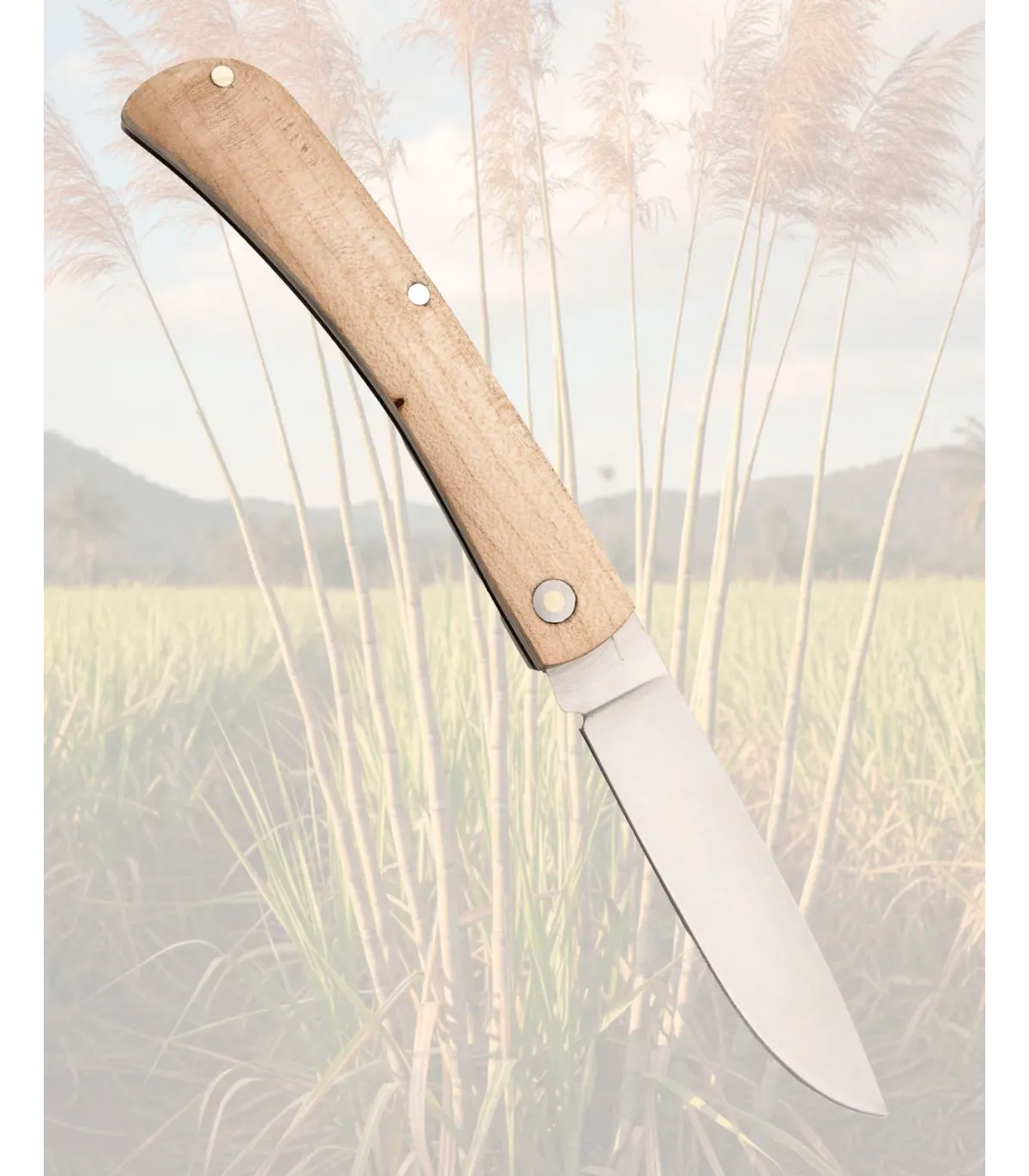 O cabo em madeira de bordo oferece um toque agradável e um acabamento natural que melhora com o uso, proporcionando uma pegada ergonômica e confortável em qualquer tarefa. Os rebites dourados e a curva sutil do cabo não só somam caráter, mas garantem uma sensação de firmeza e controle em cada movimento.