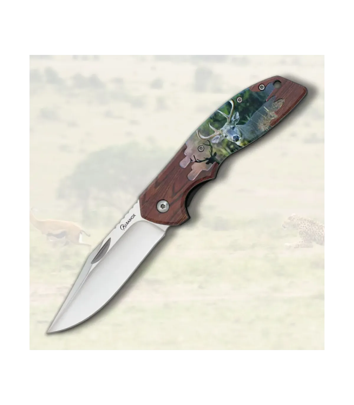 A empunhadura, com um design atraente que imita madeira e apresenta uma estampa de veados, não é apenas visualmente impactante, mas também oferece uma pegada confortável e segura. Isso é fundamental para garantir que cada movimento seja preciso e controlado, permitindo que você aproveite ao máximo a experiência.