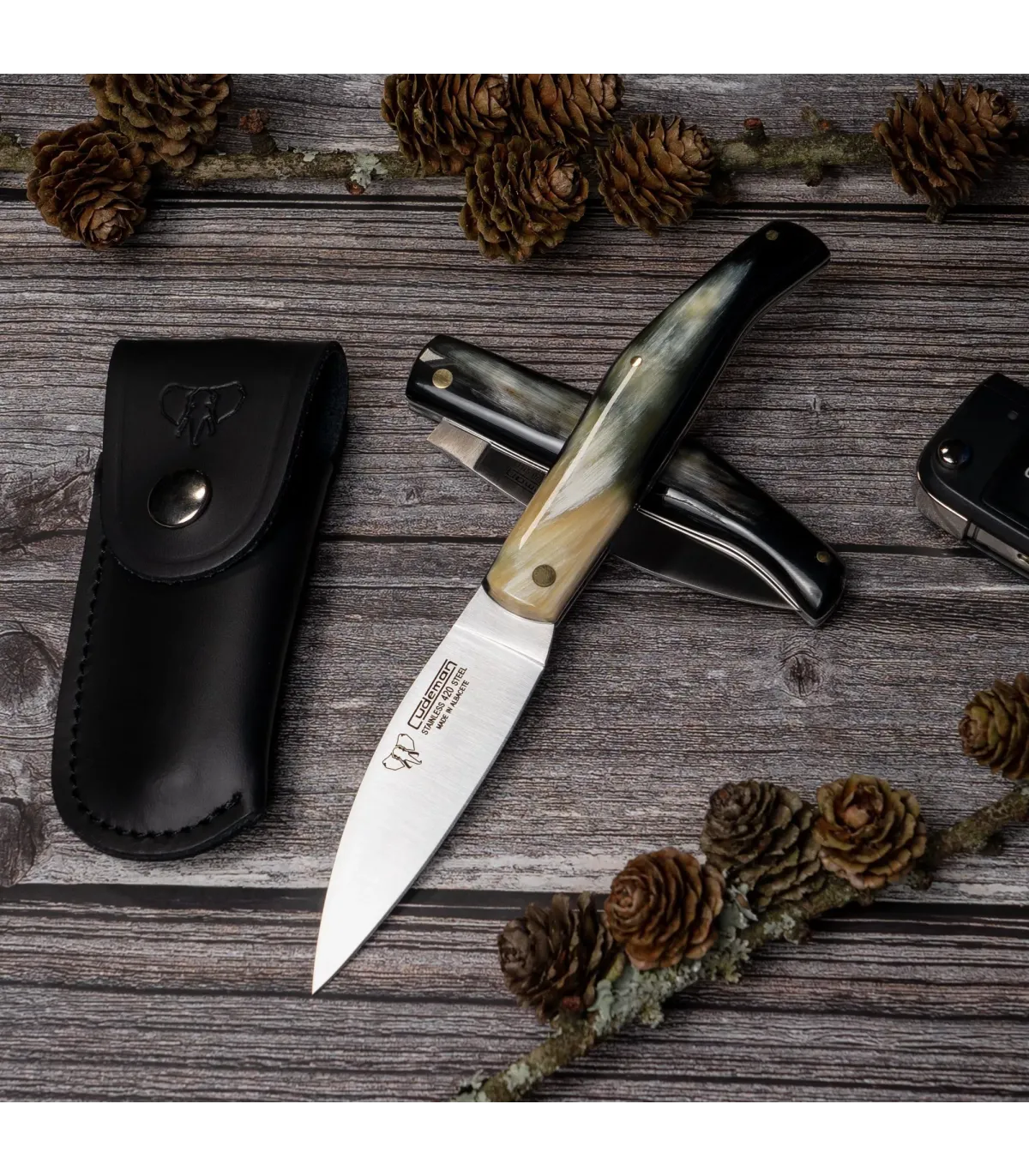 Canivete de caça Cudeman, cabo de chifre de boi polido (com bainha)