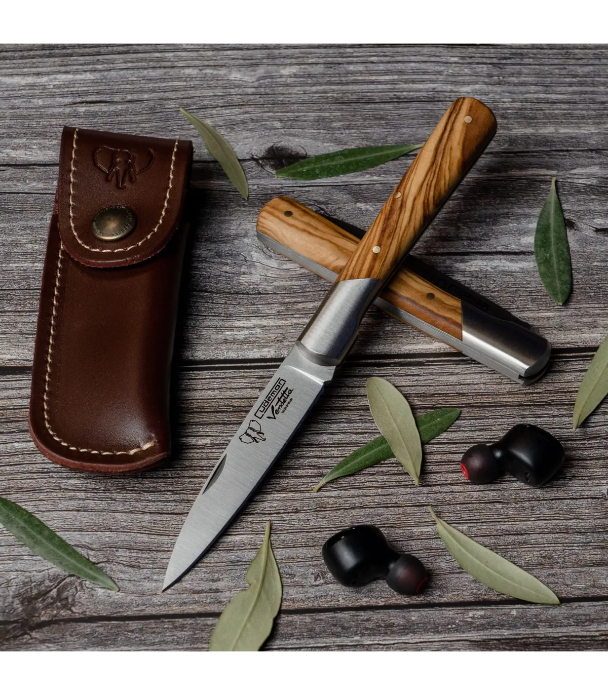 Canivete de caça Vendetta, cabo de oliva natural (com capa)