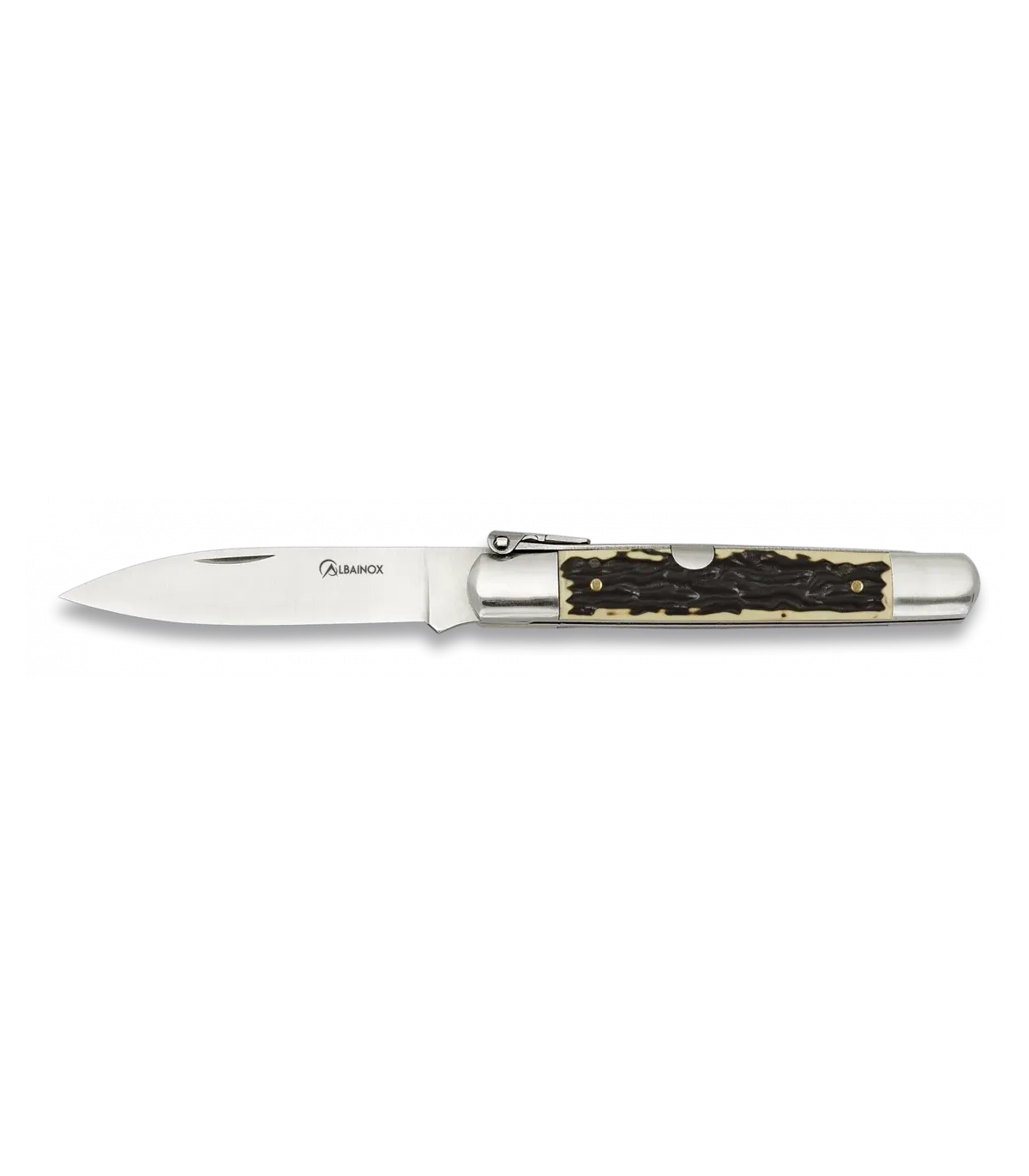 - Lâmina de Aço Carbono: A lâmina de 7,50 cm de comprimento, com acabamento acetinado, é uma verdadeira joia da tradição. Fabricada em aço carbono, esta lâmina proporciona um fio excepcional e é conhecida por sua durabilidade.