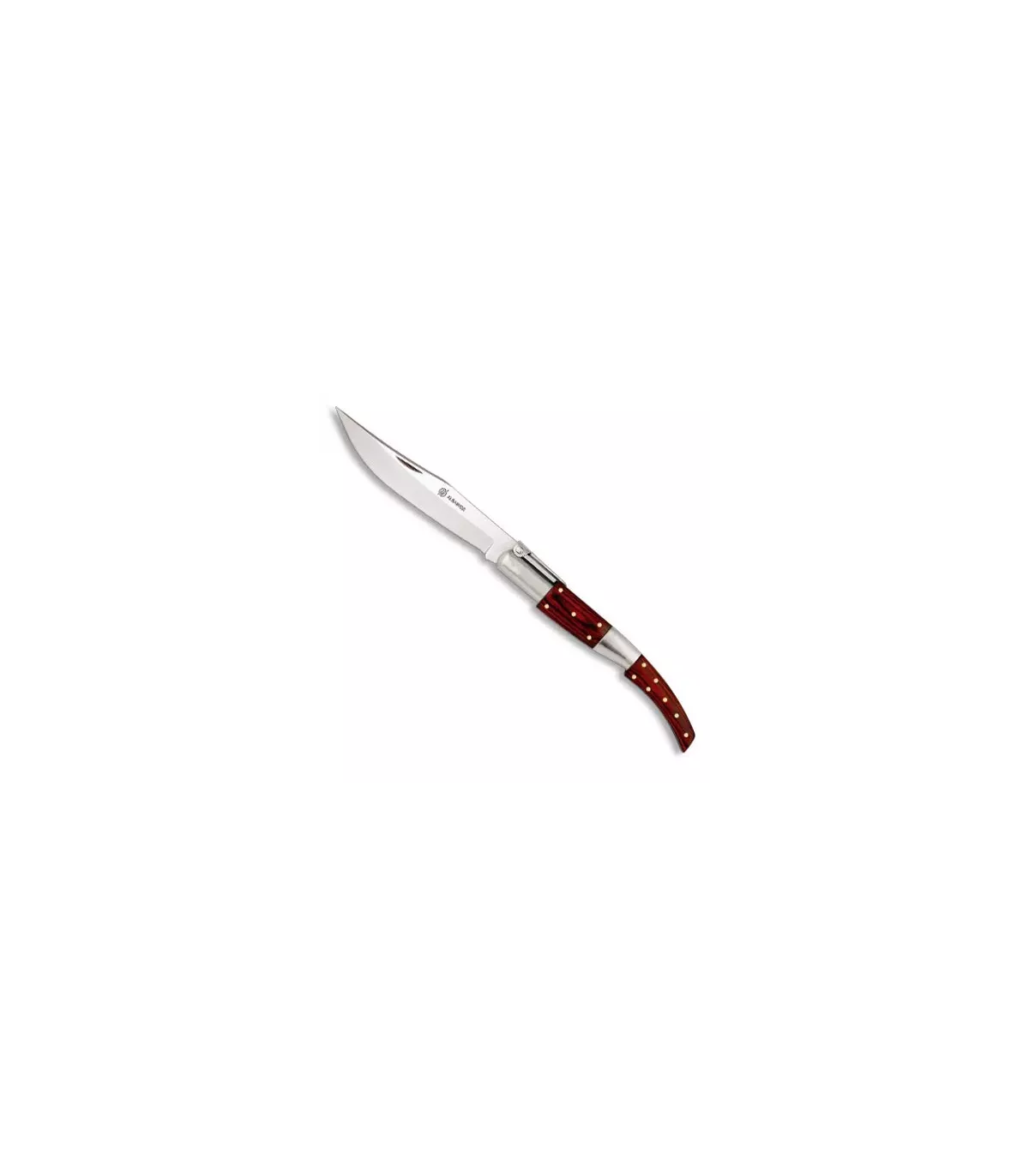 Descubra a Canivete Árabe de Carraca da renomada marca espanhola Albainox! Esta impressionante peça combina a tradição do Oriente Médio com a qualidade do aço inoxidável de 14 cm de lâmina e um elegante cabo de estamina.