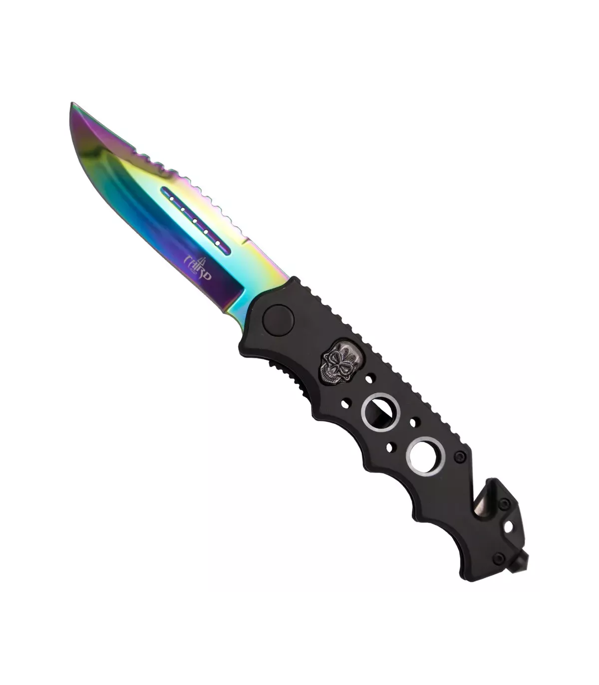 Canivete tático Third design caveira arco-íris (21,2 cm.)