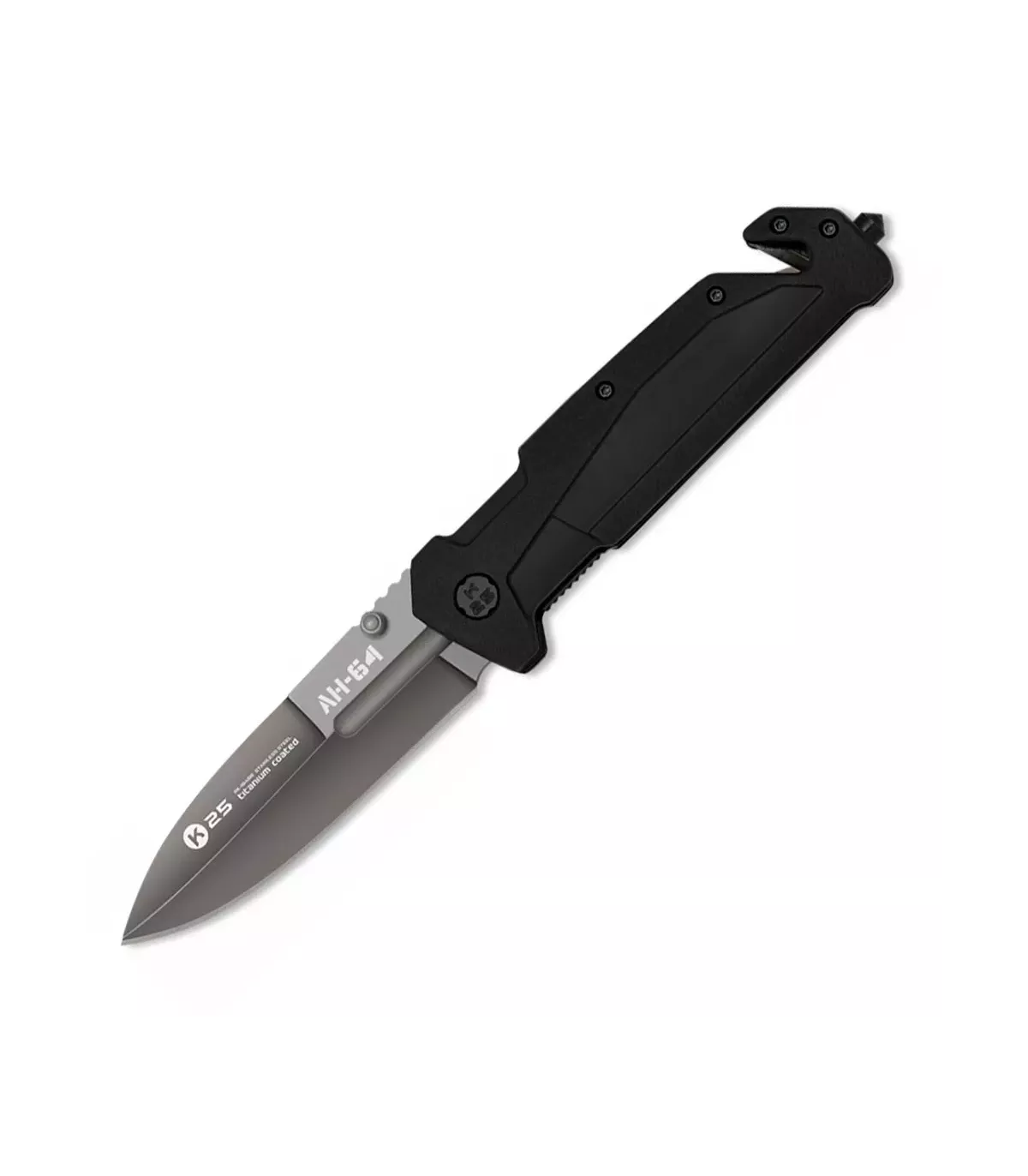 Conquiste qualquer desafio com a Canivete Tática AH-64 da K25! Projetada na Espanha e fabricada com os mais altos padrões de qualidade, esta canivete é a companheira perfeita para suas aventuras ao ar livre e situações de emergência.