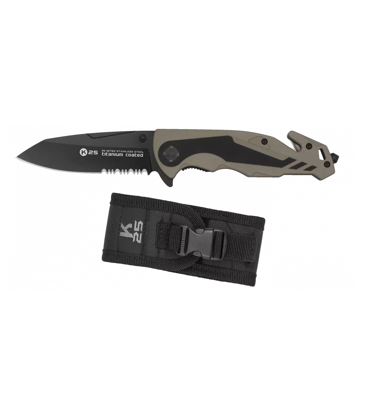 Seja você um aventureiro ao ar livre ou um socorrista, esta canivete tática de resgate K25 é uma ferramenta indispensável para qualquer kit de sobrevivência. Não espere mais para obter esta canivete tática de resgate confiável e resistente!